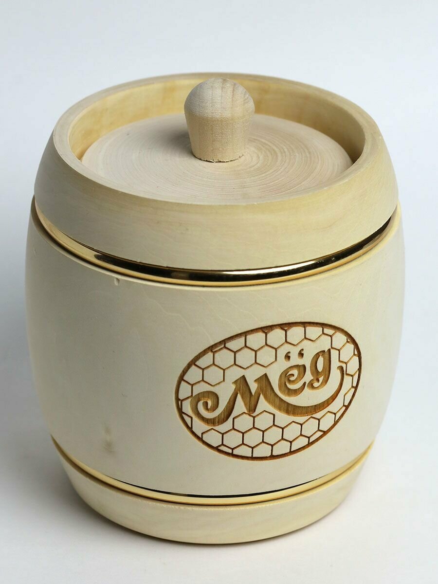 Купить Башкирский липовый мед 750 г в белом деревянном бочонке, В13
