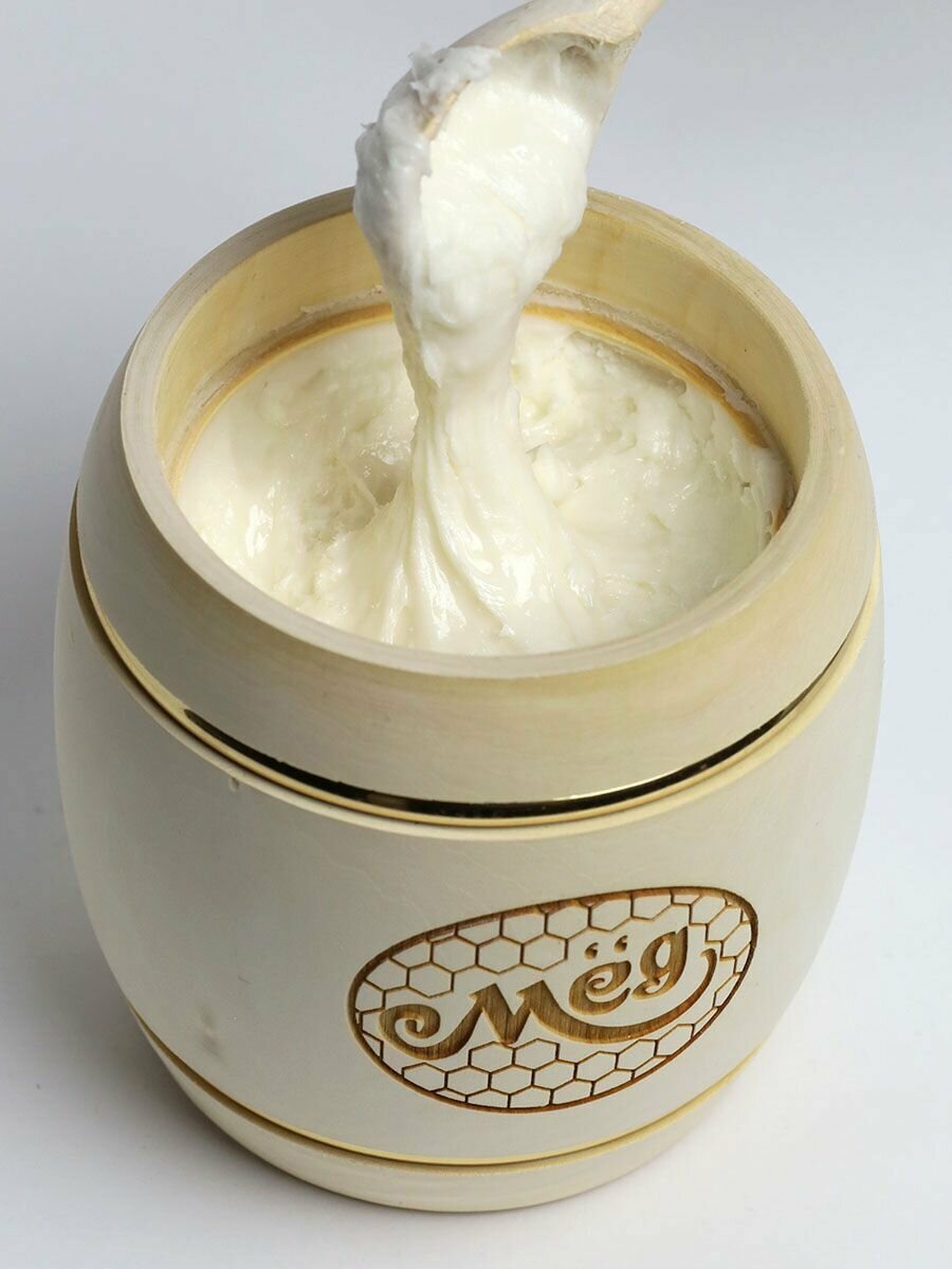 Башкирский липовый мед 350 г в белом деревянном бочонке, В11
