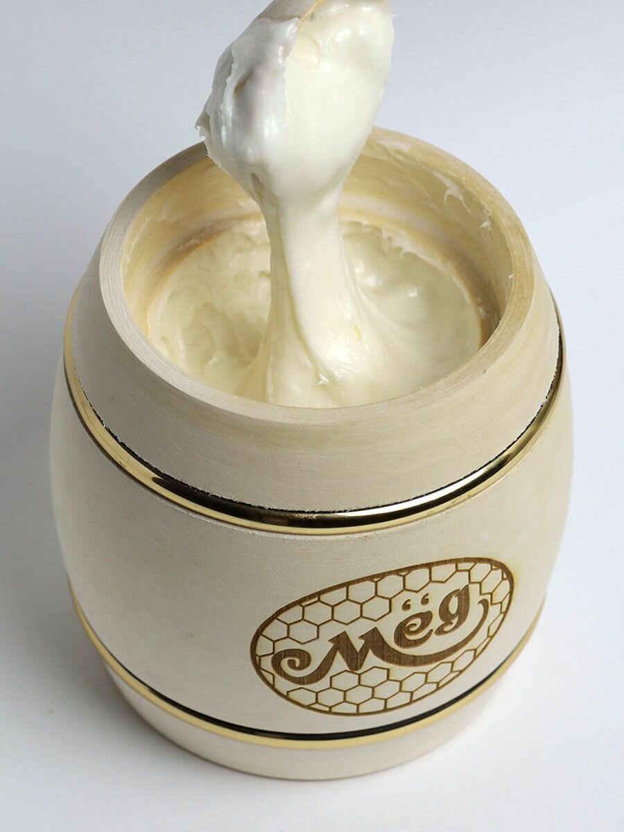 Башкирский липовый мед 250 г в белом деревянном бочонке, В9