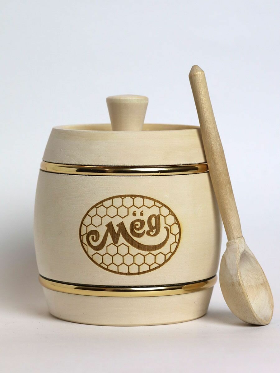 Купить Башкирский липовый мед 350 г в белом деревянном бочонке, В11