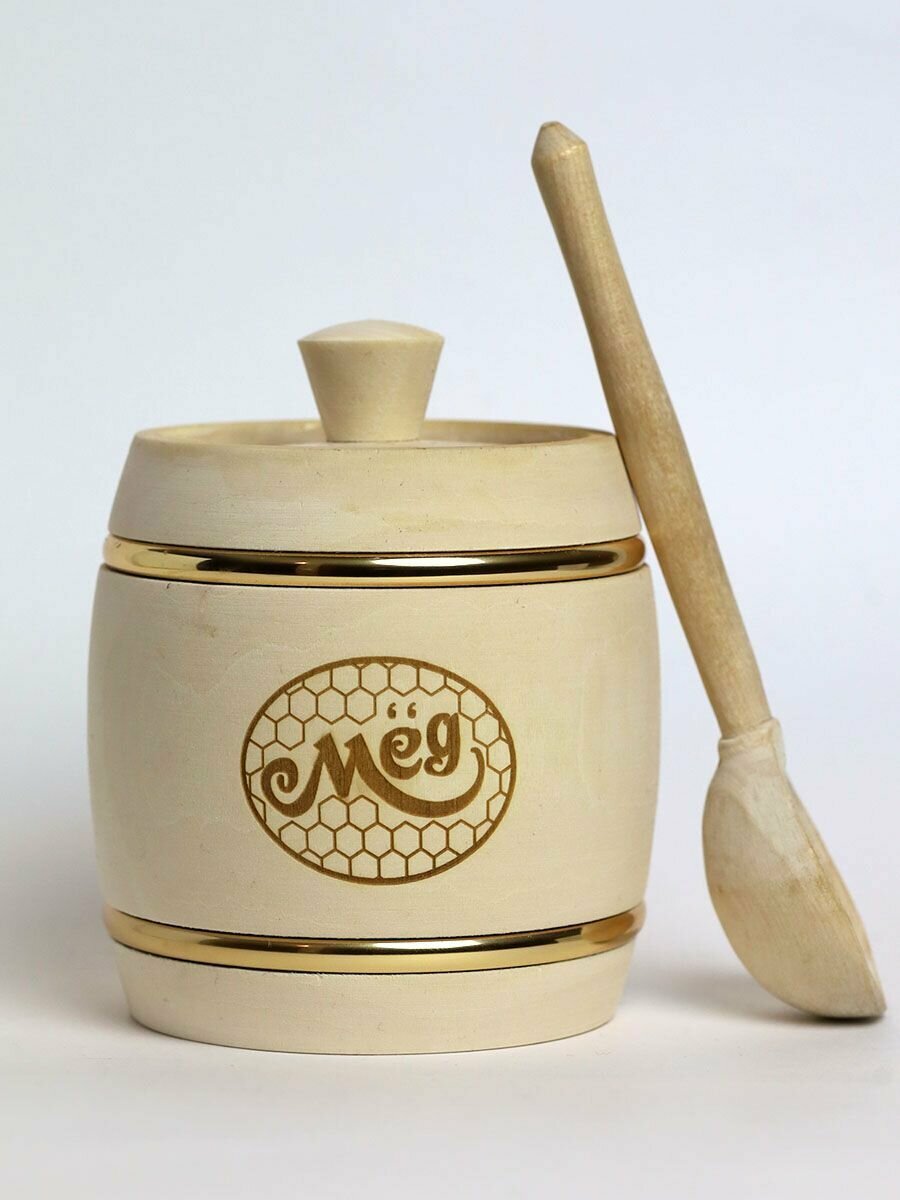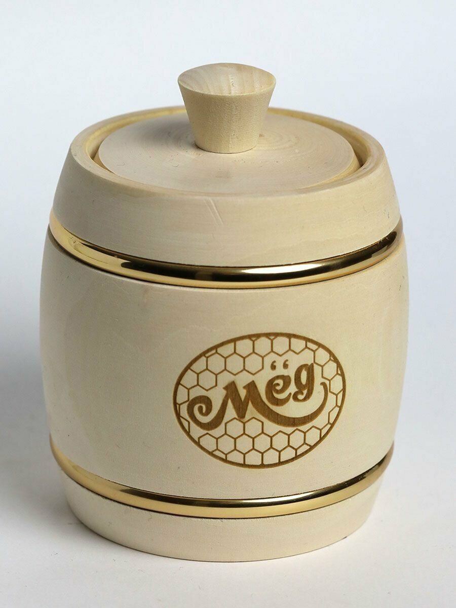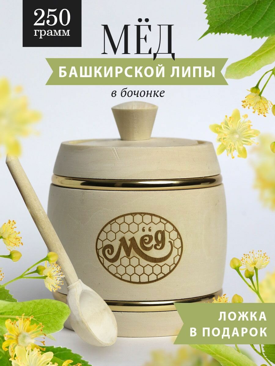 Купить Башкирский липовый мед 250 г в белом деревянном бочонке, В9