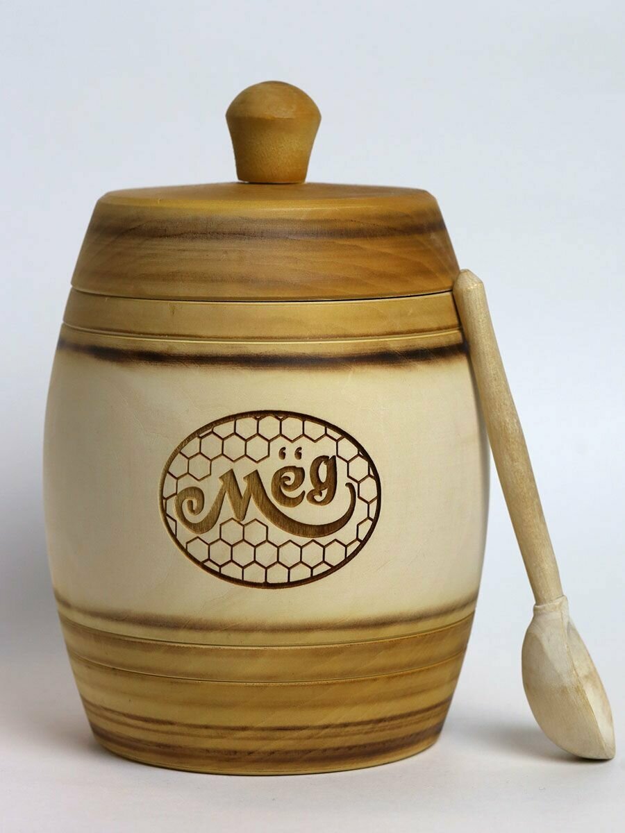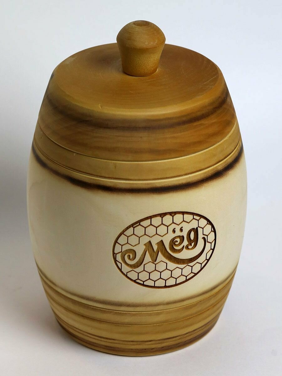 Купить Башкирский липовый мед 950 г в бело-коричневом деревянном бочонке, В17