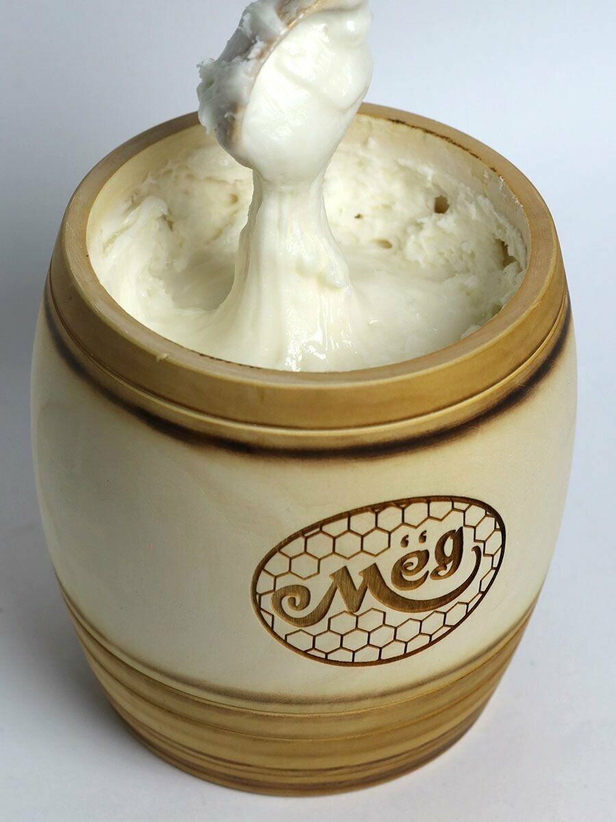 Башкирский липовый мед 350 г в белом деревянном бочонке, В11