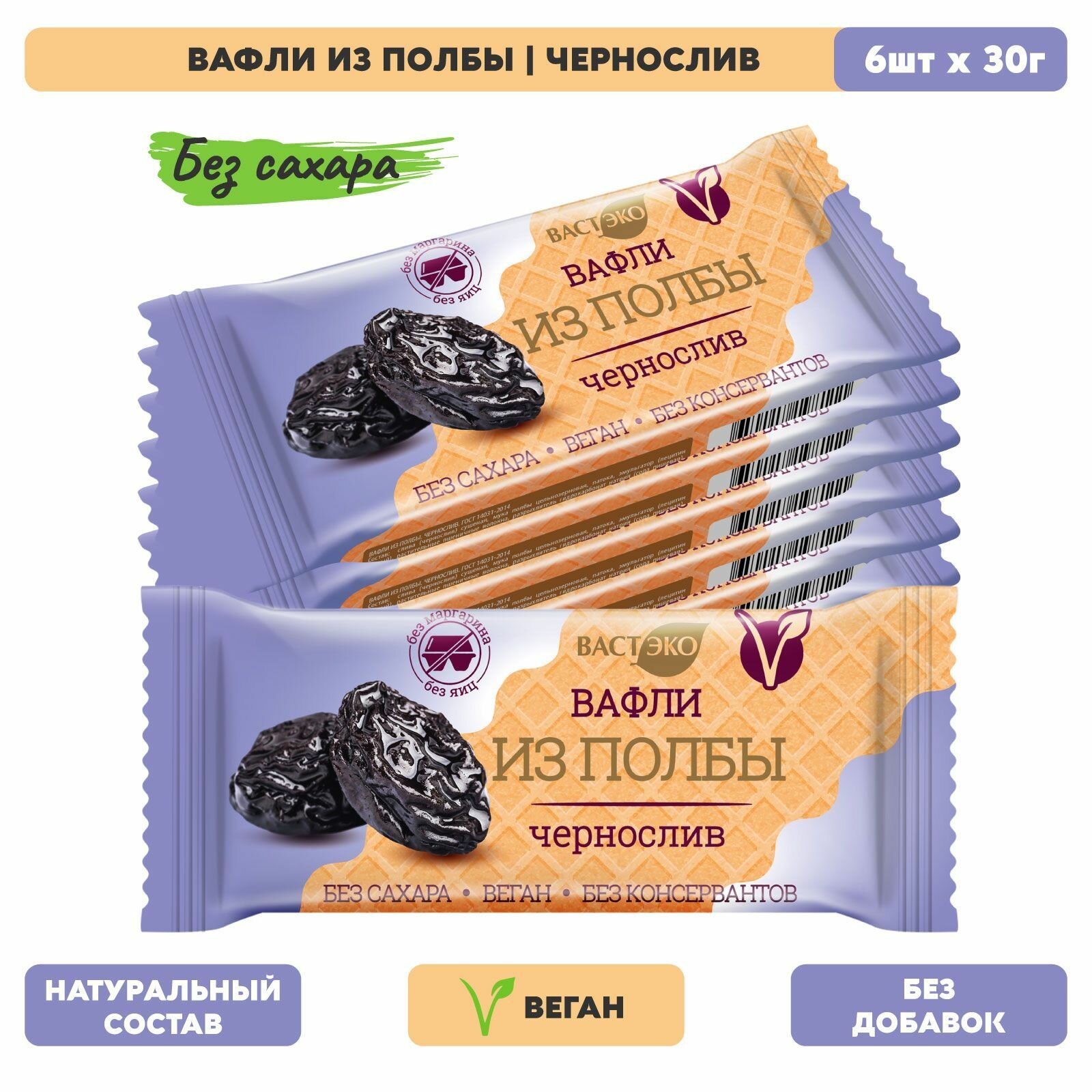 Вафли из полбы. Чернослив. Без сахара, 6 шт. х 30 г, 180 г, Веган, здоровое питание интересное: