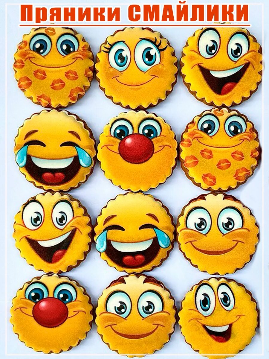 Имбирные пряники Смайлики, подарочный набор 12шт, сладкий подарок интересное:
