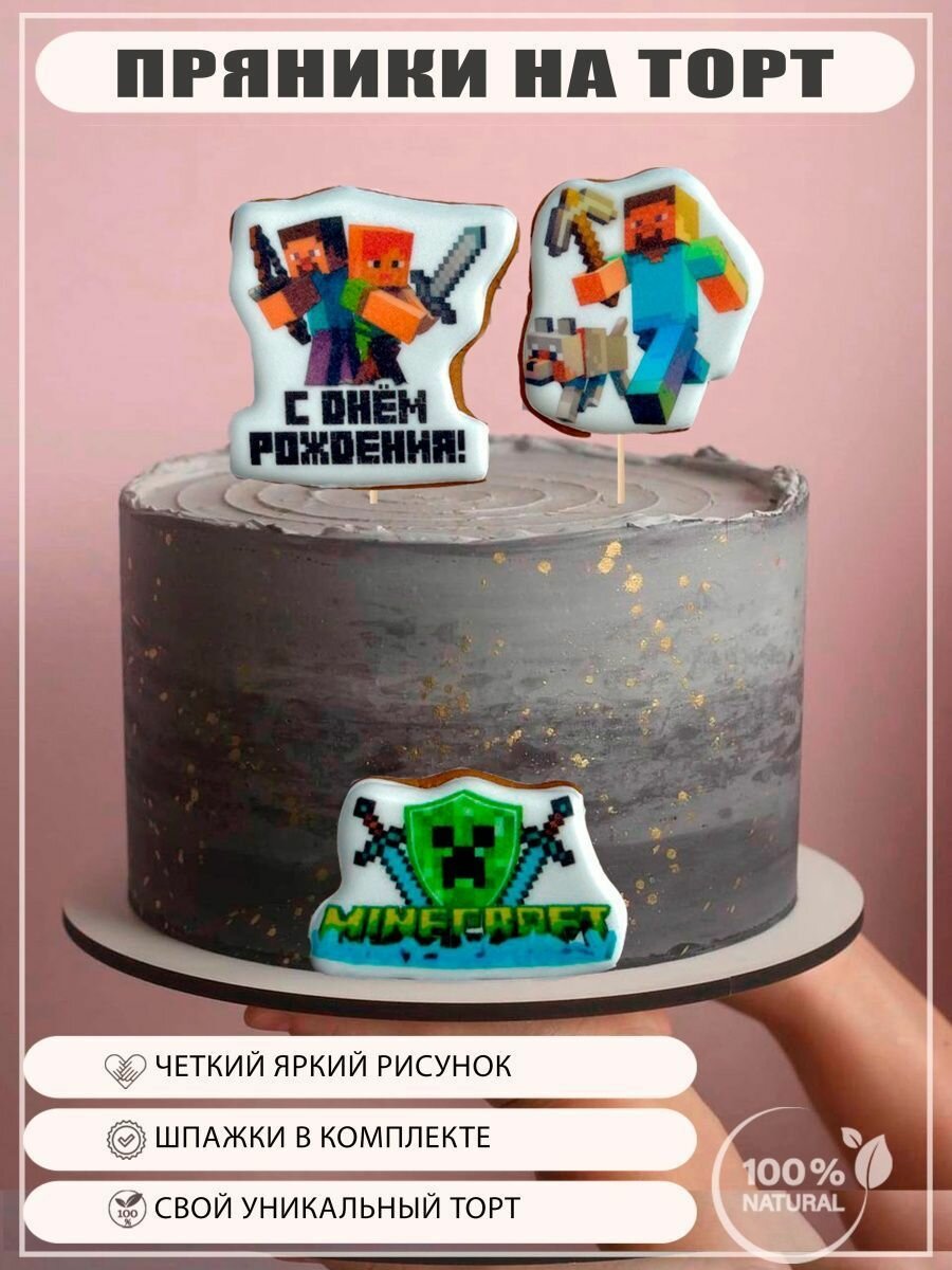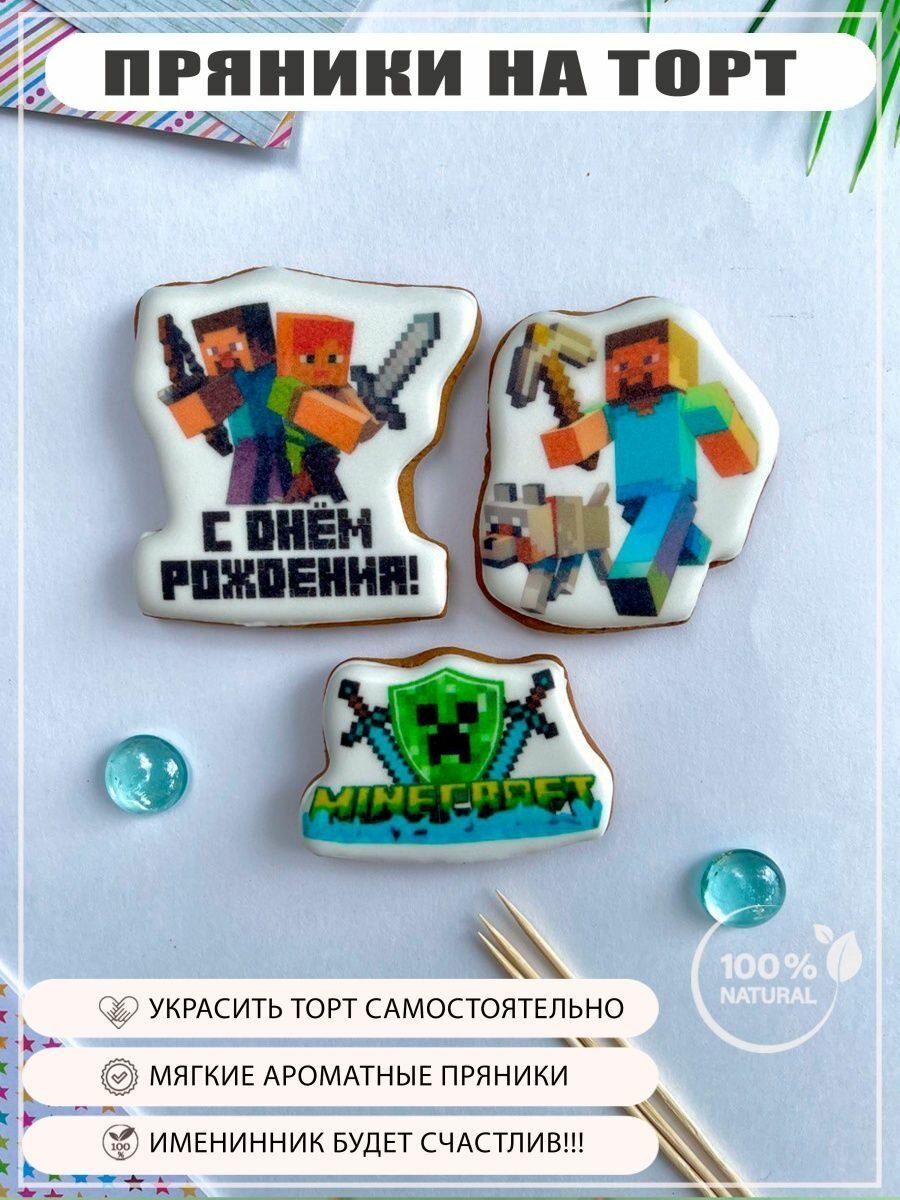 Имбирные пряники набор на торт Майнкрафт, 3 шт интересное: