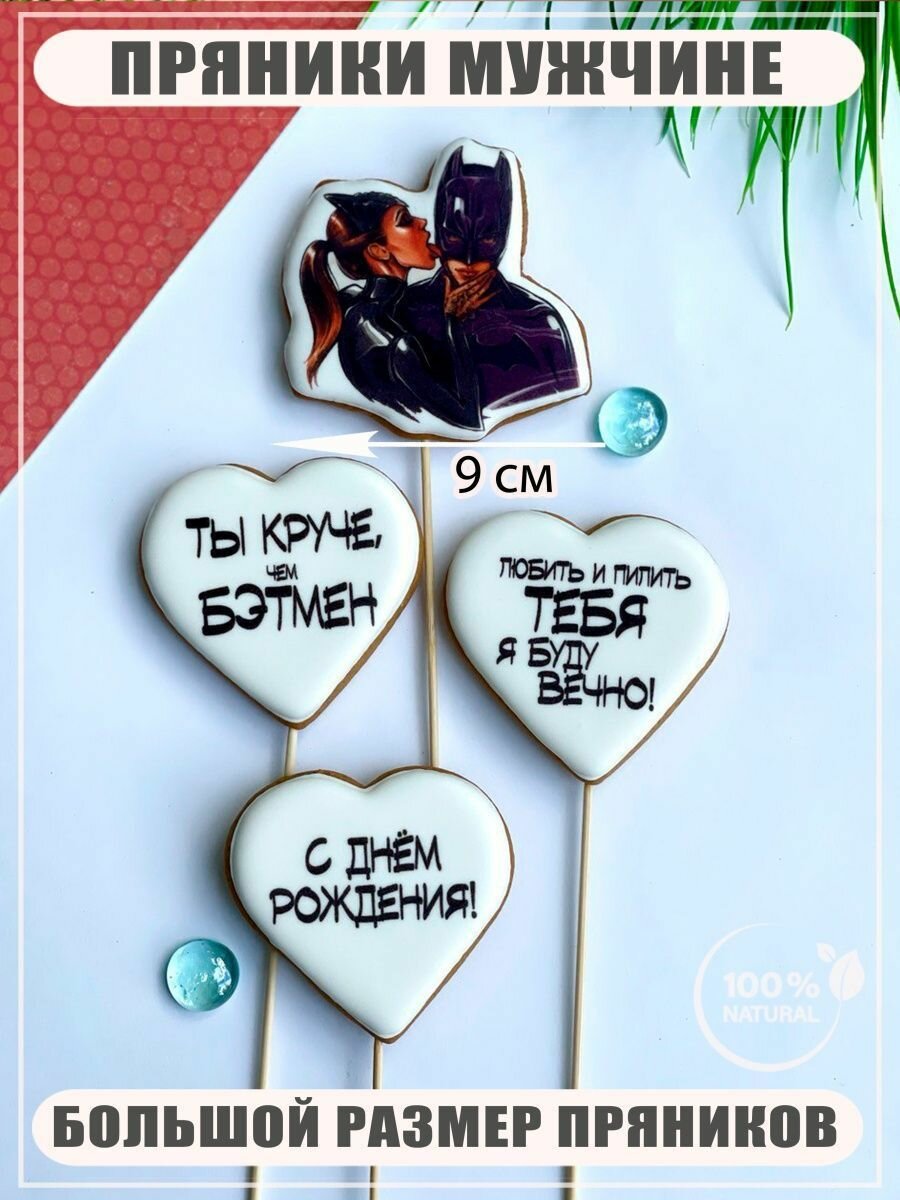 Купить Имбирные пряники топперы на торт мужчине, прикольные, Бэтмен и Черная Кошка