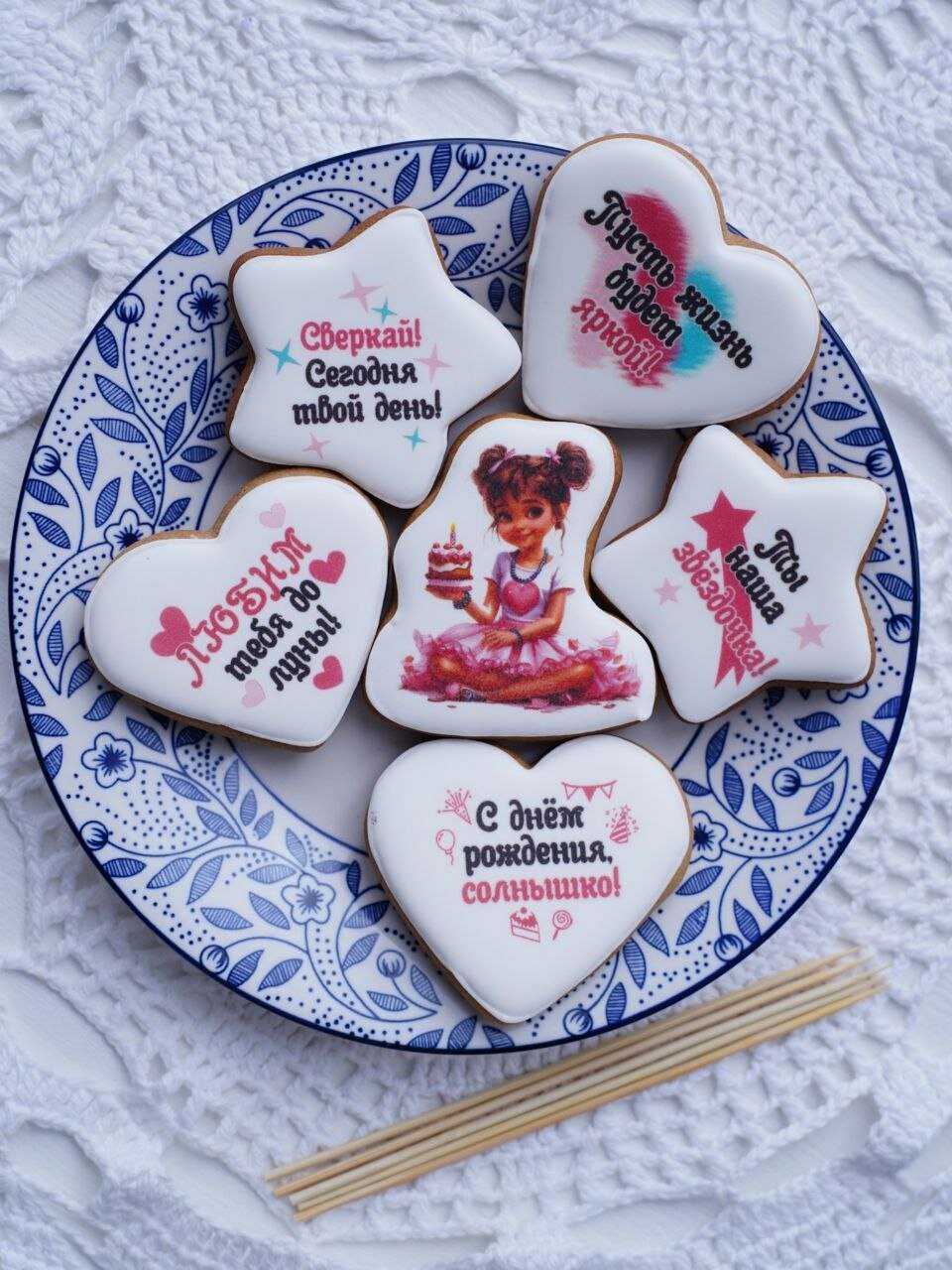 Имбирные пряники на день рождения для девочки, дочки, топперы на торт, украшение для торта