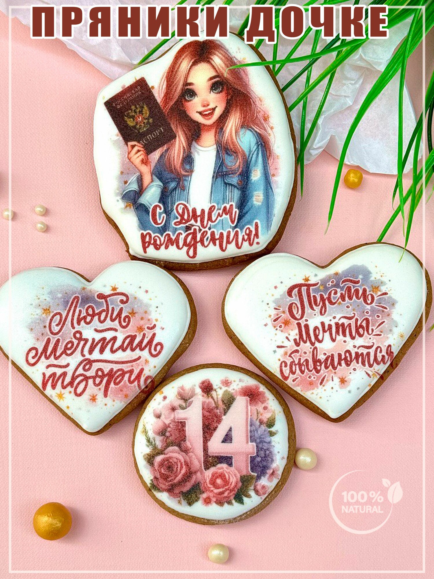 Купить Имбирные пряники на 14 лет для девочки, топперы на торт, паспорт