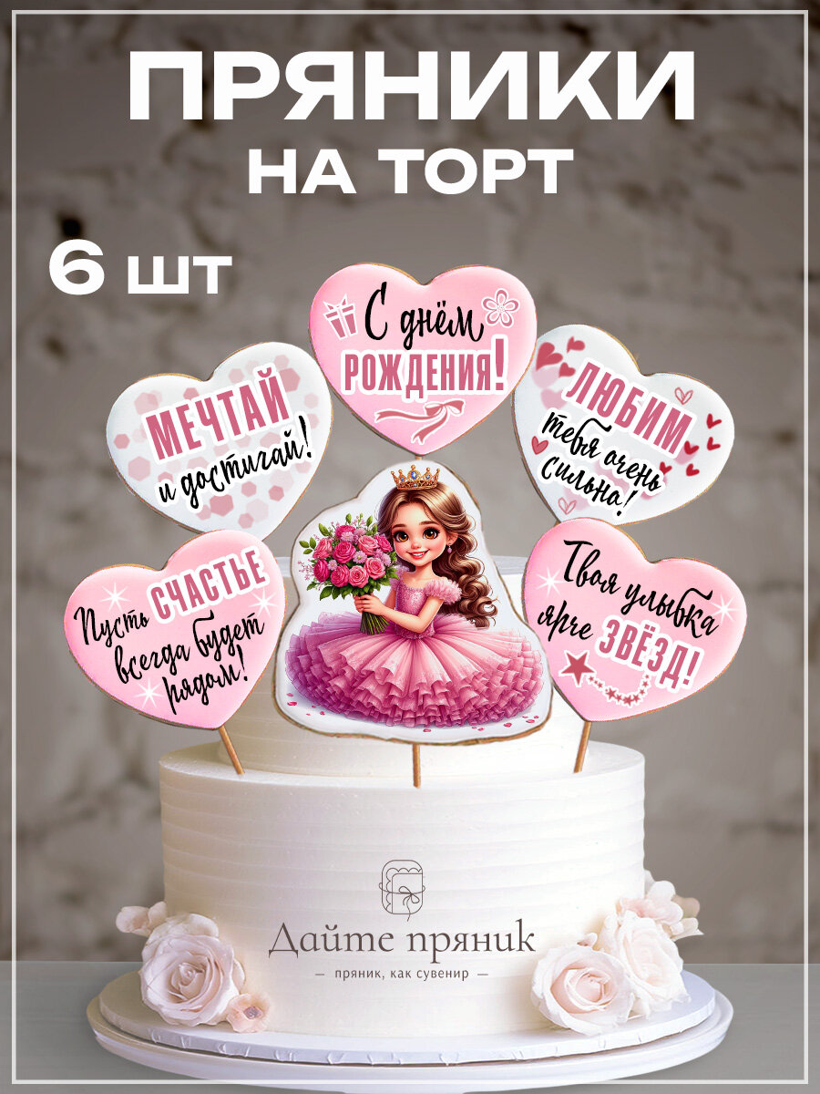 Имбирные пряники на день рождения для девочки, дочки, топперы на торт, украшение для торта