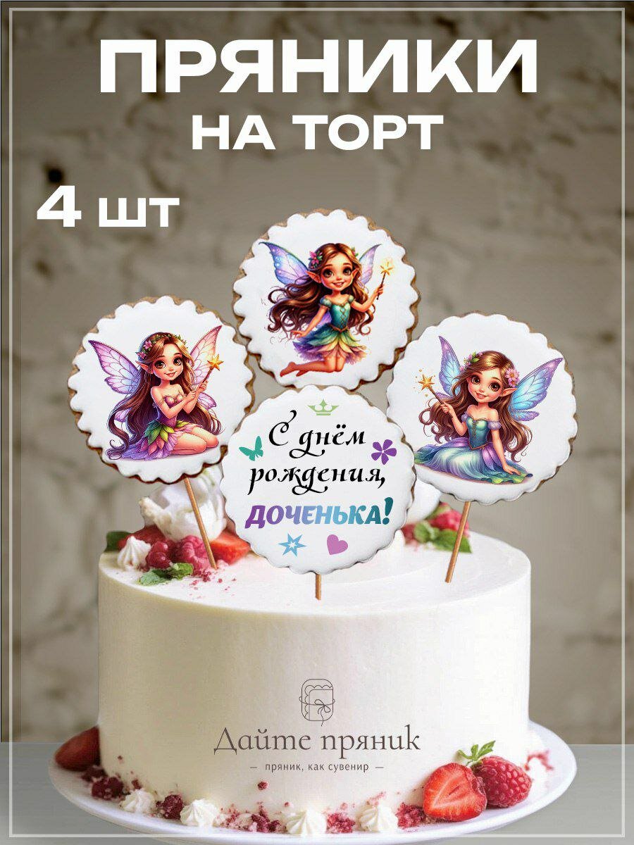 Купить Имбирные пряники на торт девочке с днем рождения, топпер на торт для дочки, феи