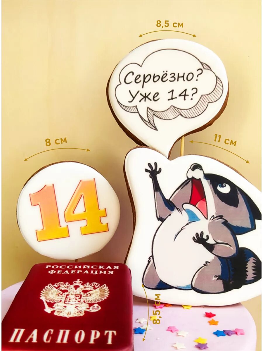 Имбирные пряники на торт на 14 лет Паспорт, 5 шт.