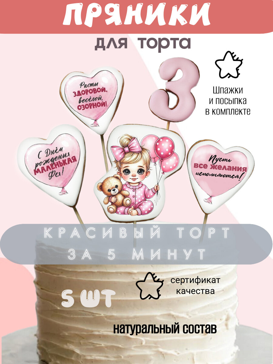 Пряники на торт для девочки 3 года, 5 шт. интересное: