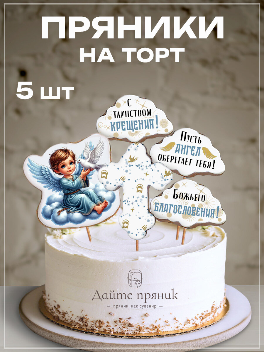 Имбирный пряник на крестины для мальчика, сына, топпер на торт на Крещение интересное: