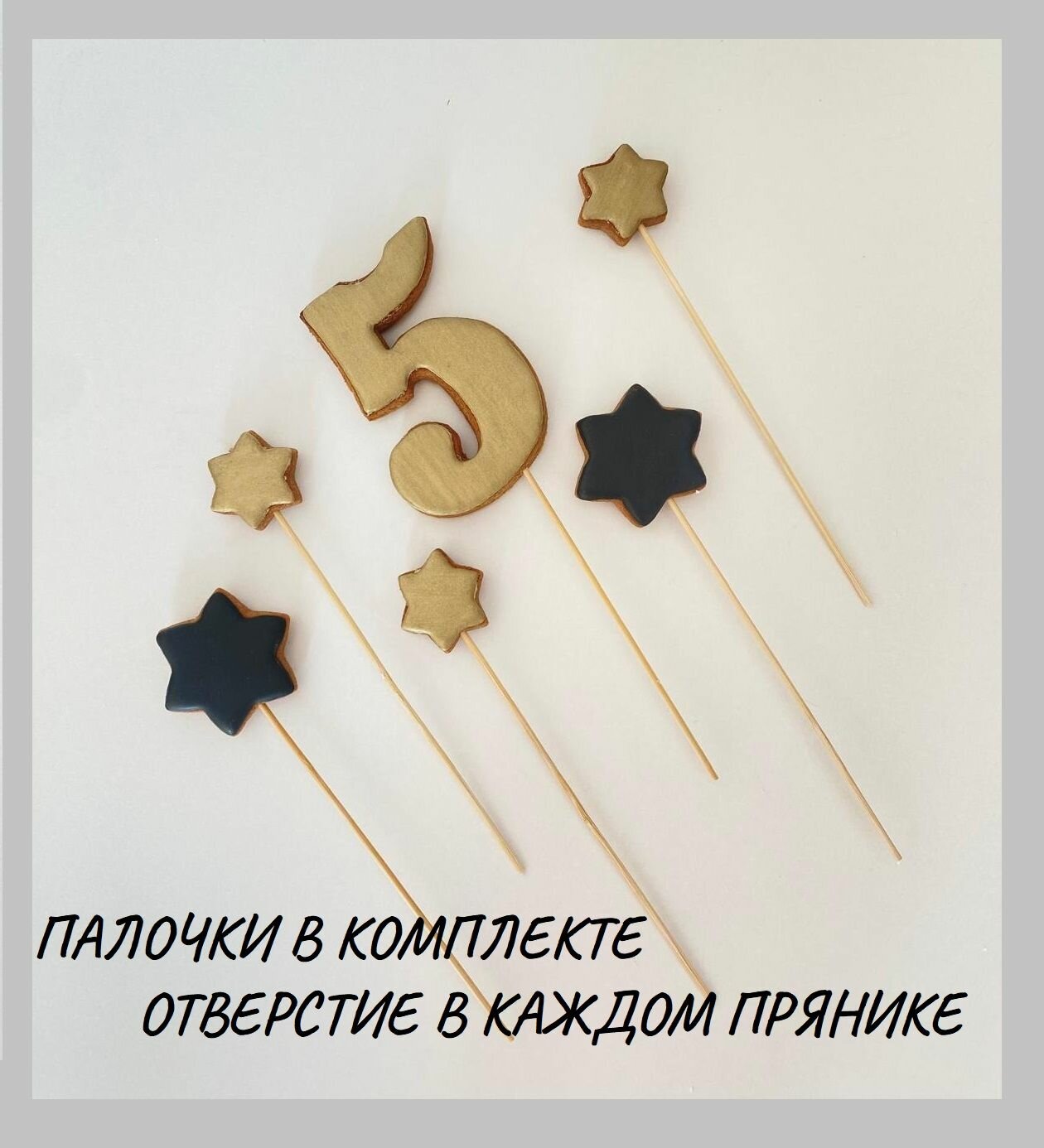 Купить Пряник имбирно-медовый для торта цифра "5" золотая топпер на шпажке