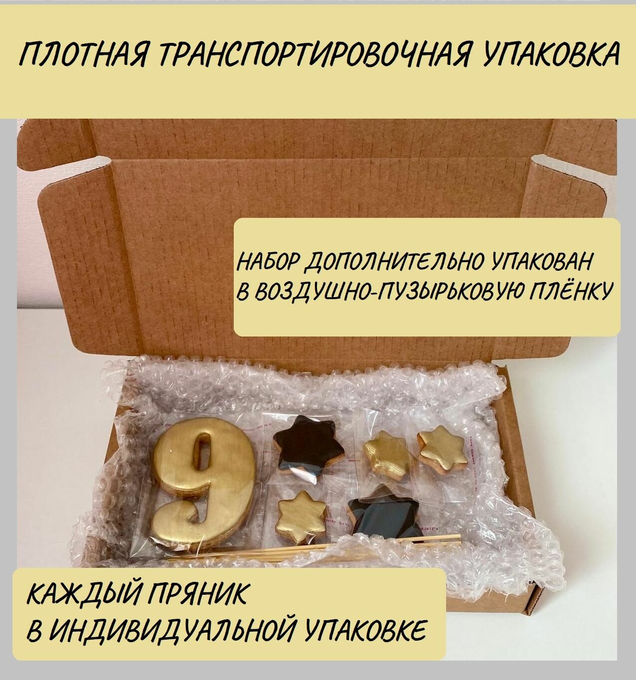 Купить Пряник имбирно-медовый для торта цифра "9" золотая топпер на шпажке