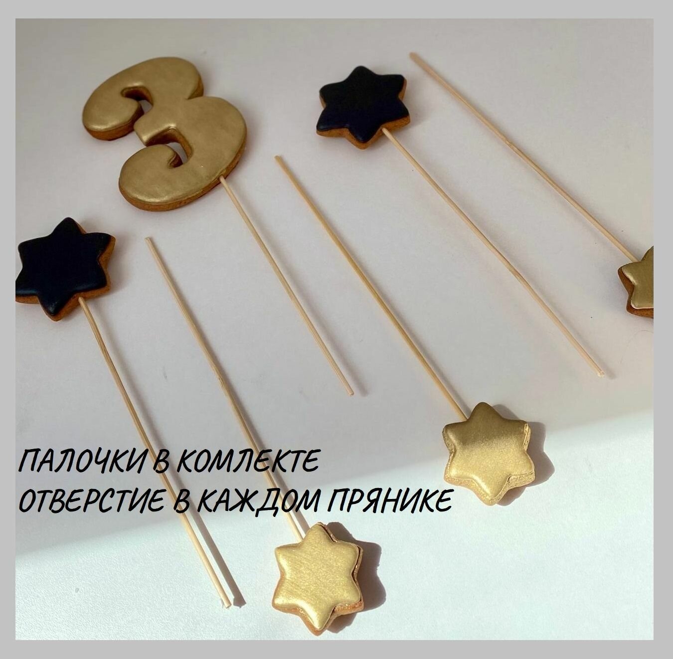 Пряники имбирно-медовые для торта "10" золотые топпер на шпажках