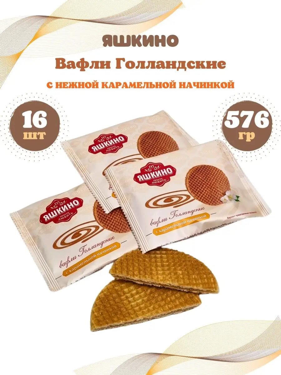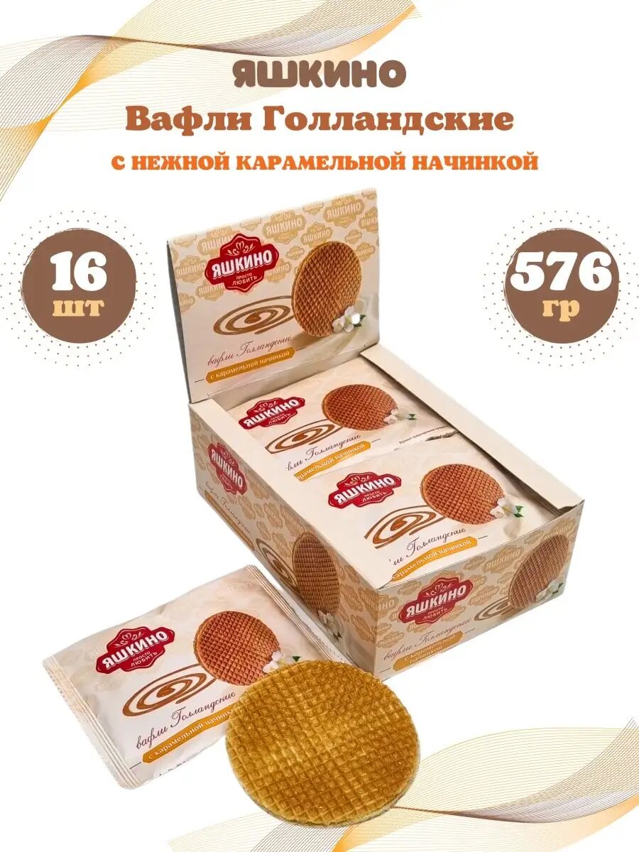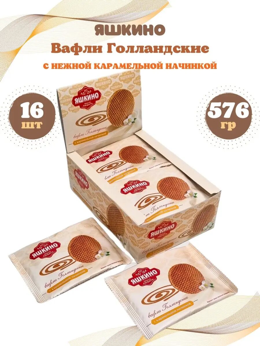 Вафли Яшкино "Голландские", с карамелью, 665г, песочное тесто, картонная упаковка, 16шт интересное: