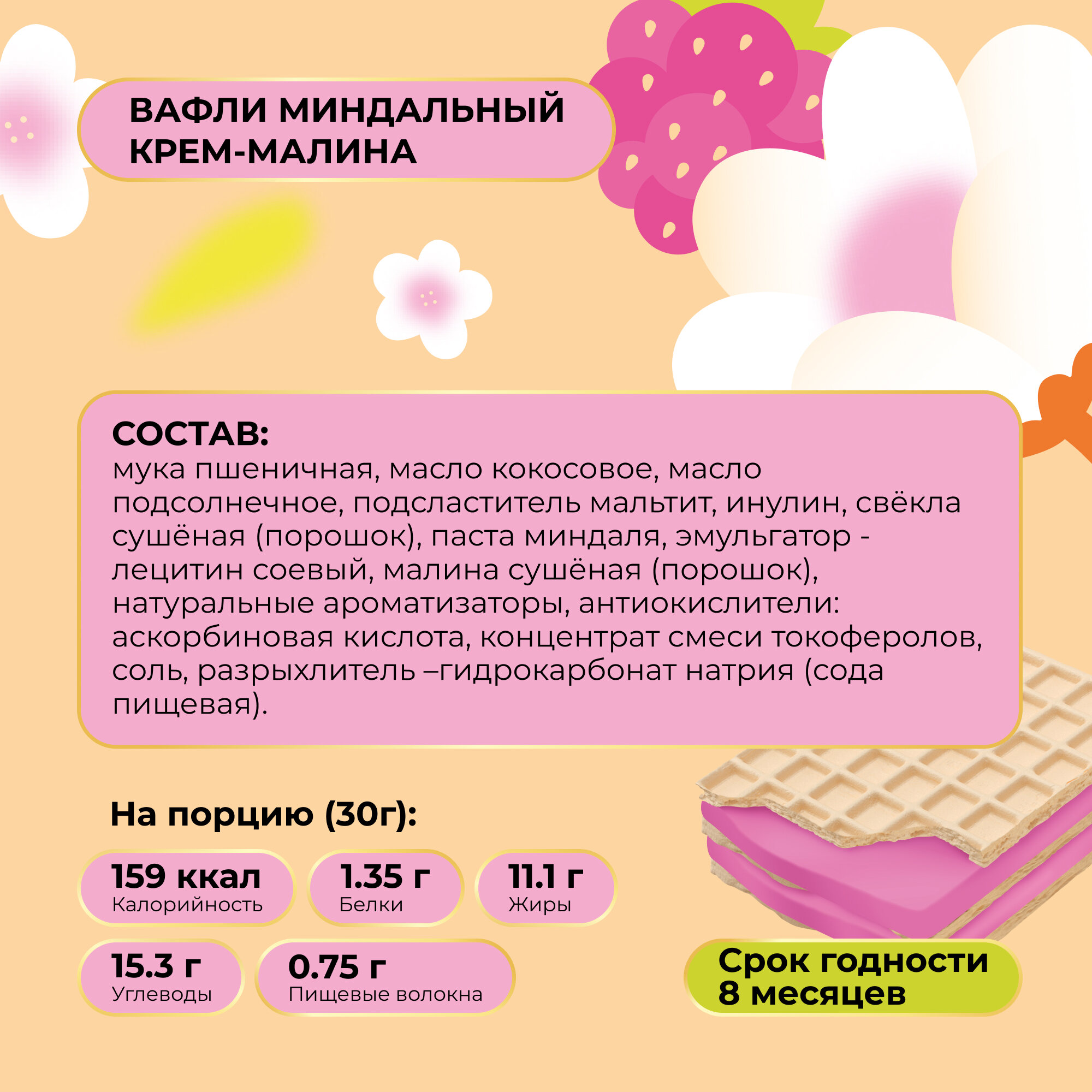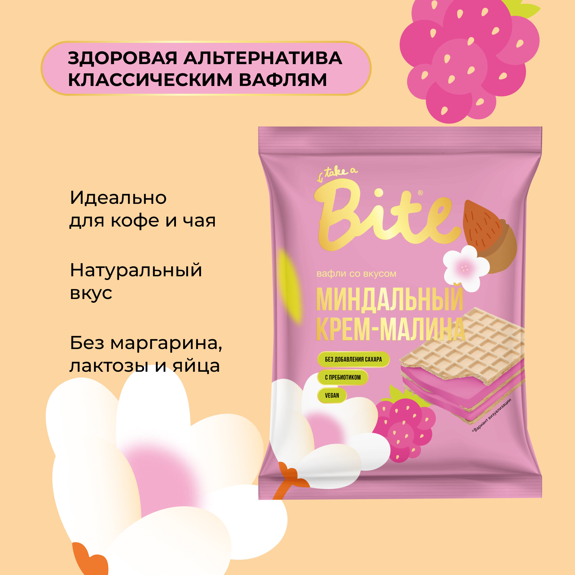 Вафли без сахара Take a Bite, Малина-Миндальный крем цветочные, 30 гр, 10 шт интересное: