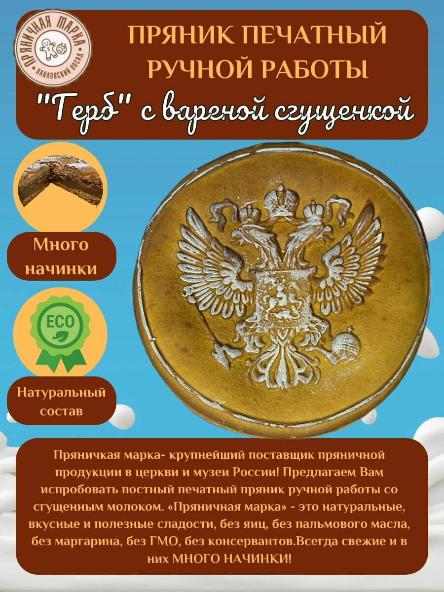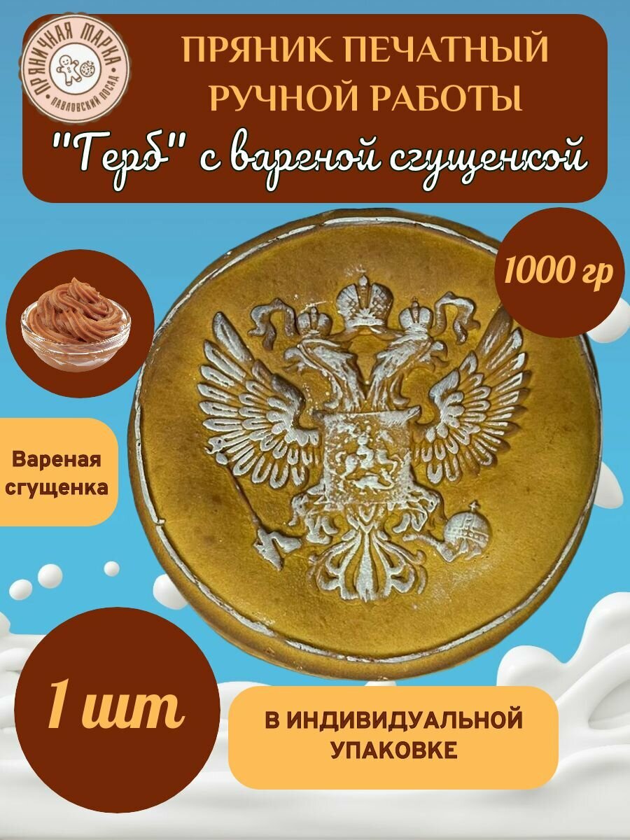 Пряник печатный "Герб" с вареной сгущенкой герб 1 шт, 1000 г Пряничная Марка интересное: