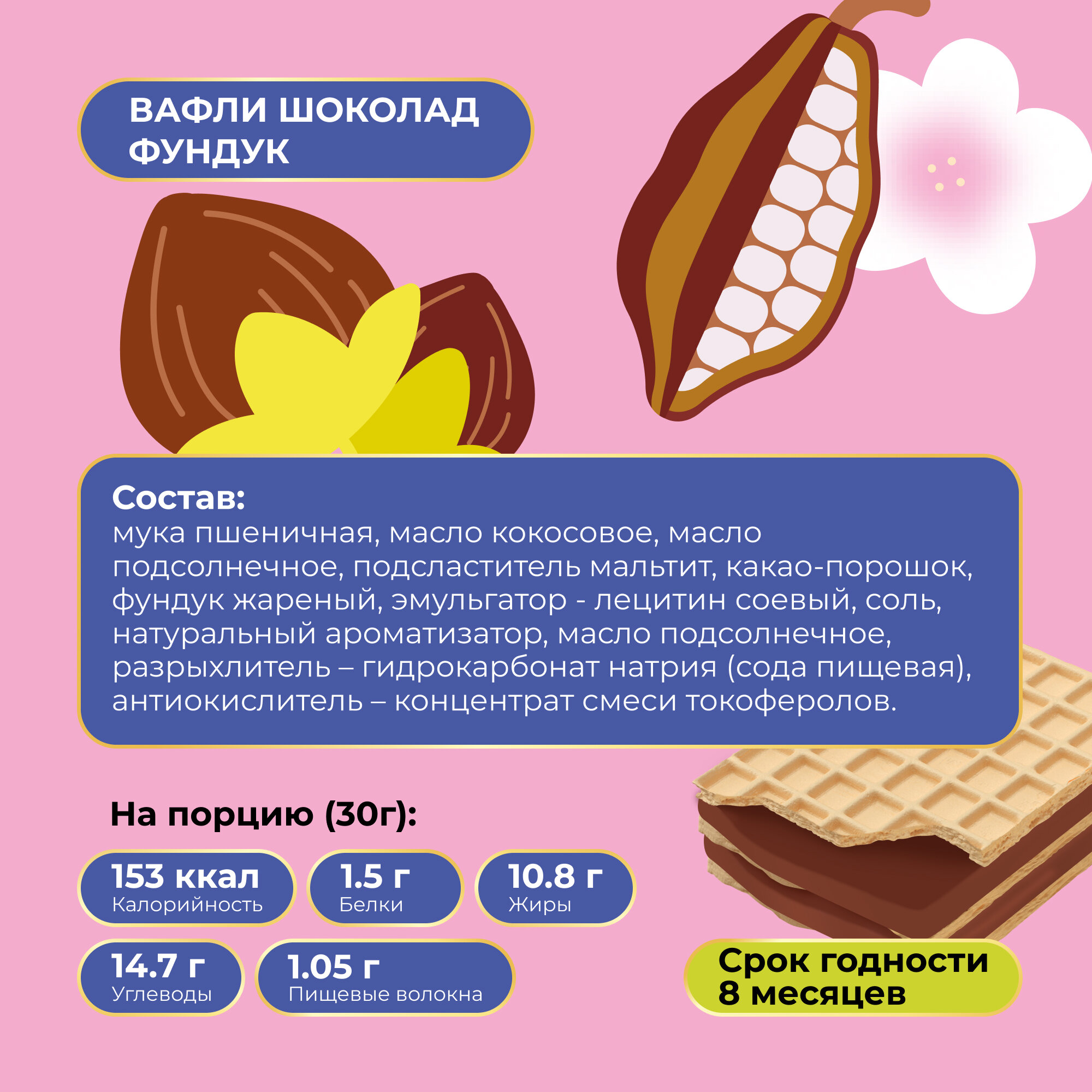 Вафли без сахара Take a Bite, Шоколад-Фундук цветочные, 30 гр, 10 шт интересное: