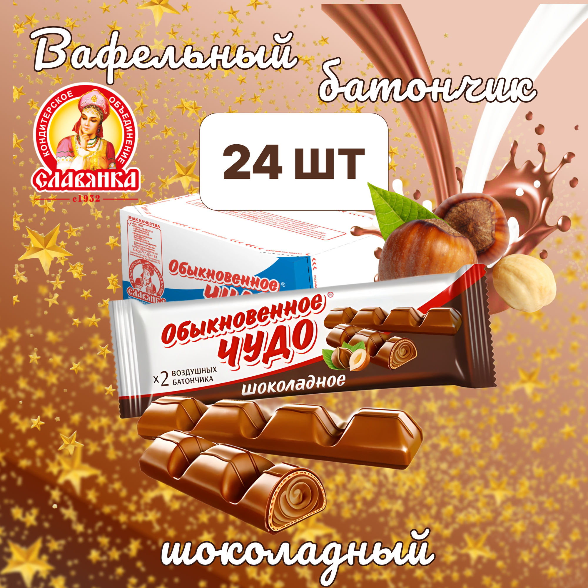 Вафли Обыкновенное Чудо Шоколадное 55гр, 24шт/уп интересное:
