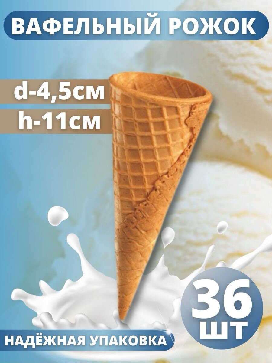 Вафельный рожок для мороженого, 10 г, 11 см , упаковка - 36 шт интересное: