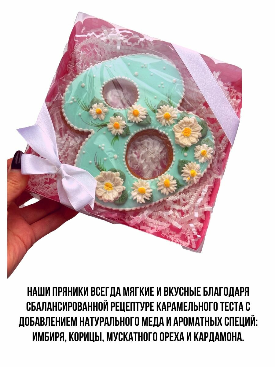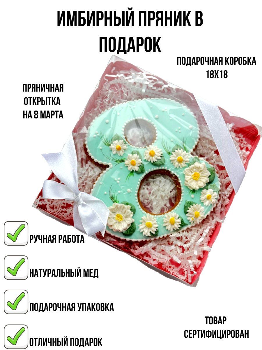 СохранитьНабор "Пряник-открытка на 8 марта" с ромашками, подарочный, имбирный медовый пряник, ручная работа, 180 гр интересное: