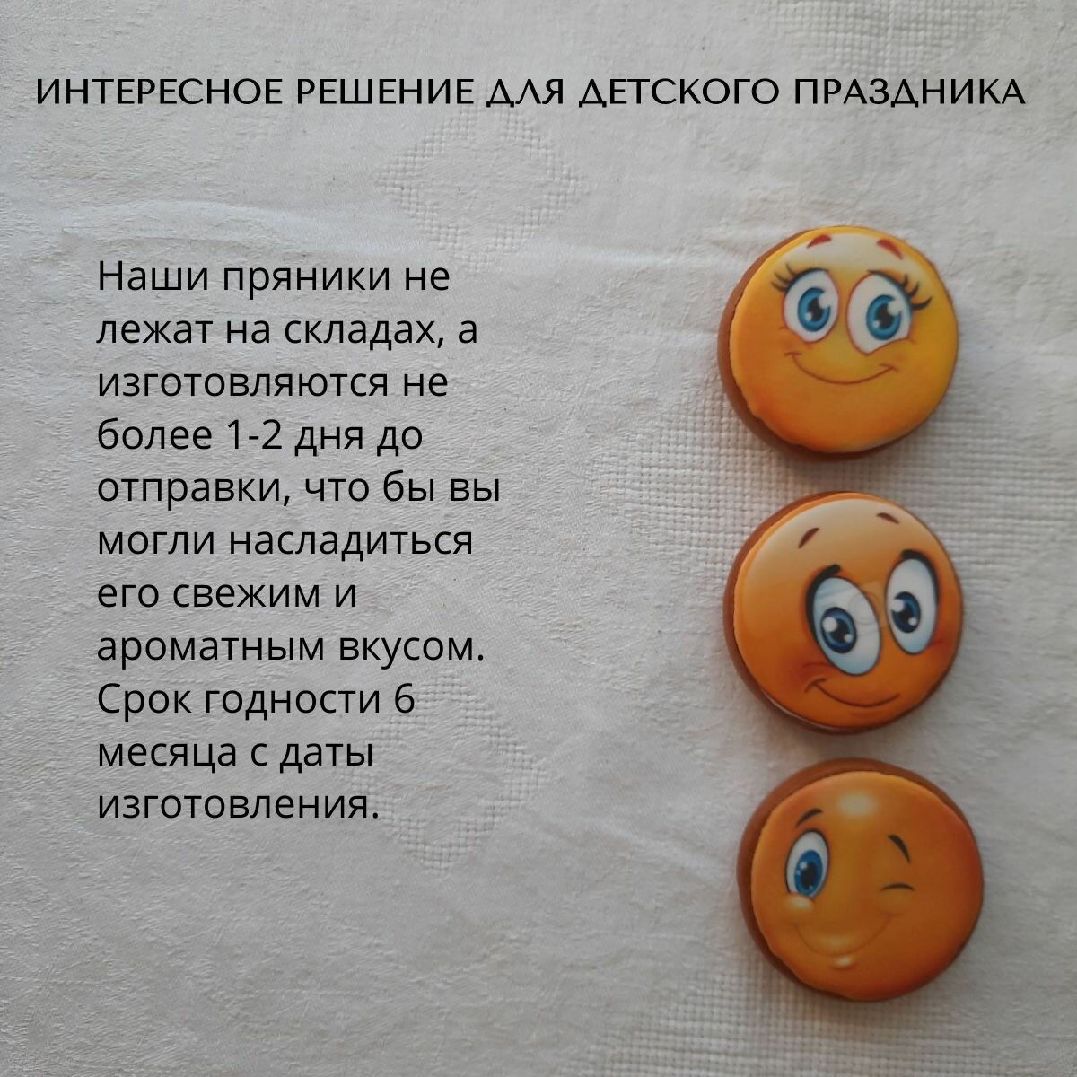 Купить Имбирные пряники веселые Смайлики круглые, набор из 18 штук без меда, угощение на день рождение в школе, детском саду