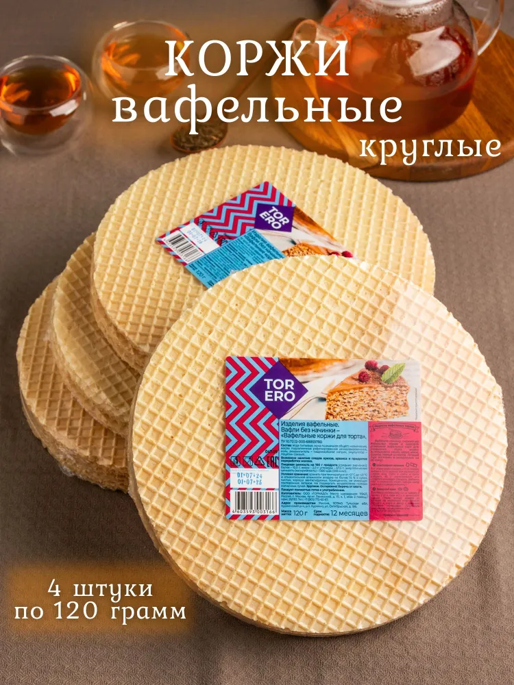 Коржи Вафельные круглые, 4 шт по 120 гр TORERO интересное: