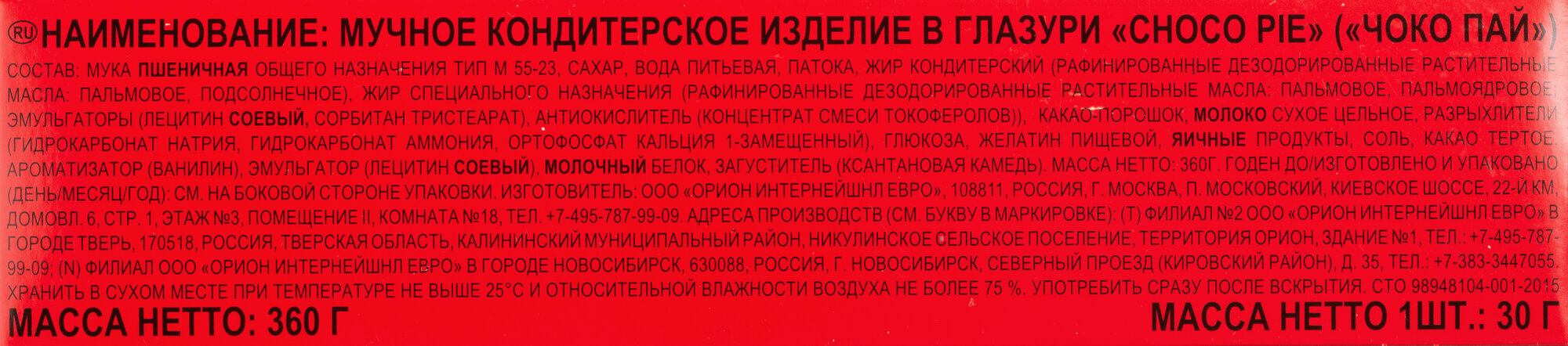 Пирожное Orion Чоко Пай, 30 г, картонная упаковка, 8 упаковок по 12 шт интересное: