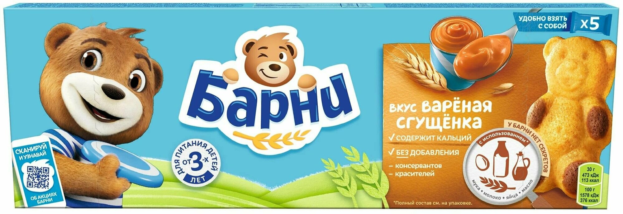 "Барни" - бисквит с начинкой "вареная сгущенка", 4 упаковки по 150 гр.