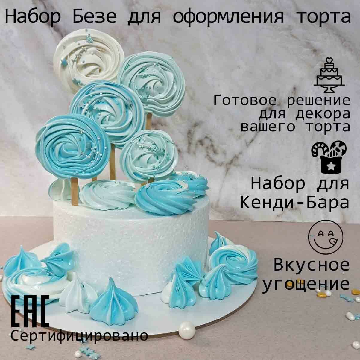 Купить Безе для украшения торта, голубого цвета. Маренга к сладкому столу. Оформление для кенди-бара.