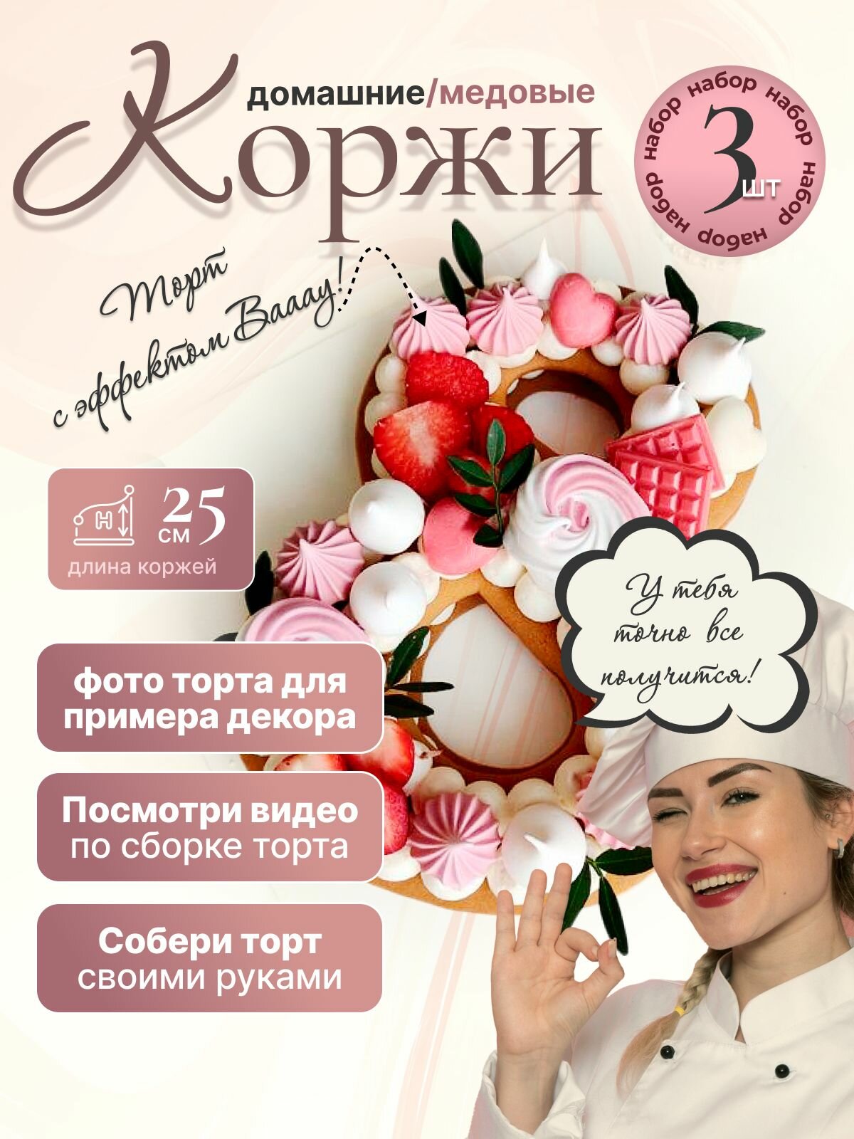 Медовый корж для торта "Цифра 3" красивый, открытый с эффектом ВАУ!