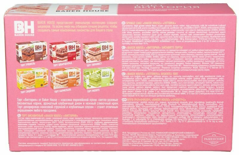 Торт бисквитный Baker House Виттория клубника 350гр (3шт) интересное: