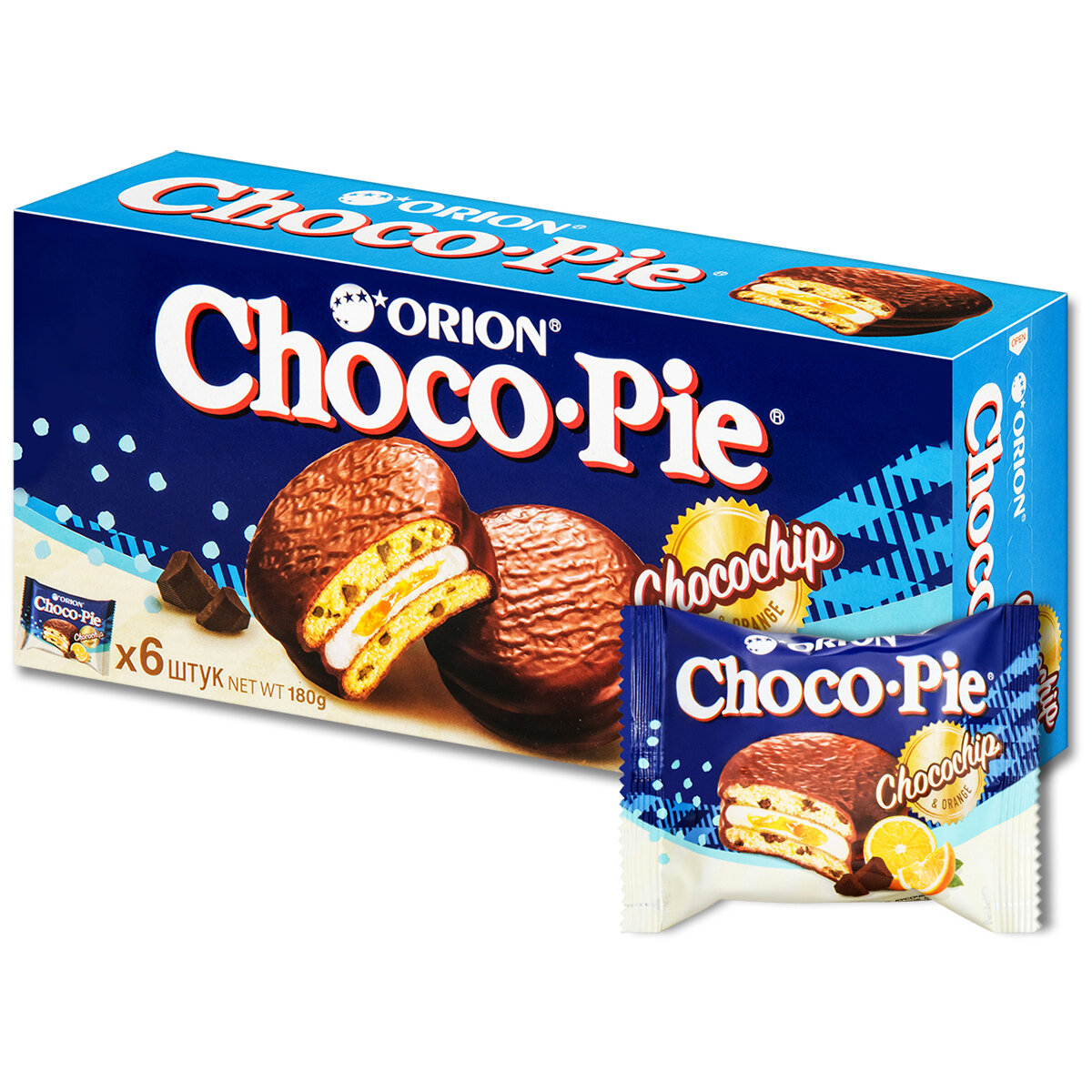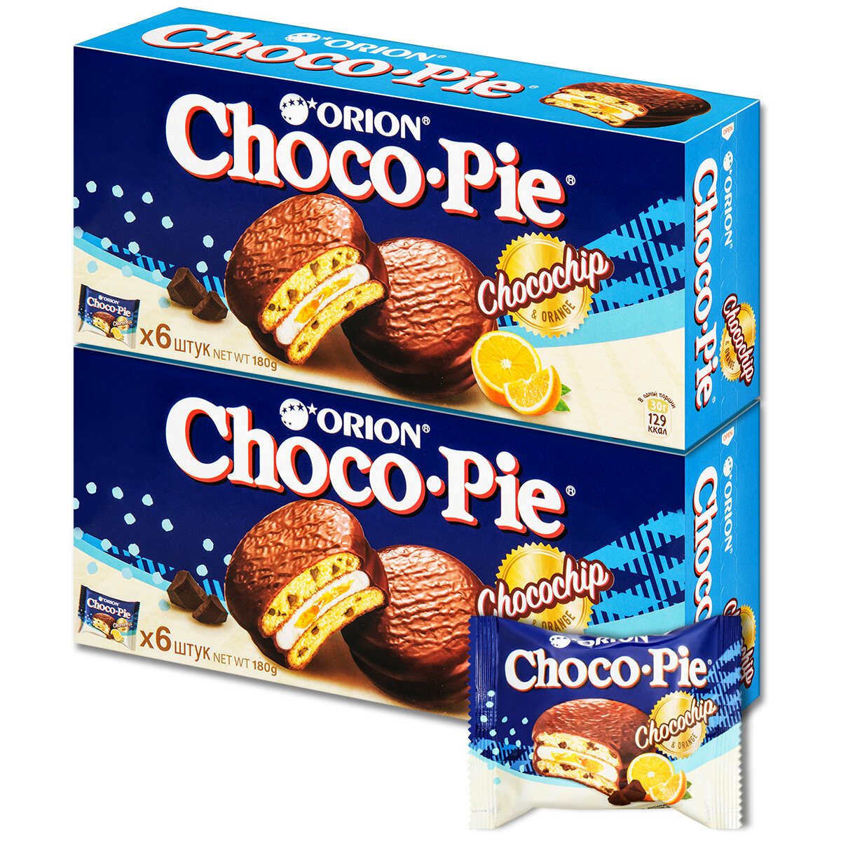 Choco Pie пирожное Чоко Пай апельсин с шоколадом 6 шт, 180 г, 1 уп.