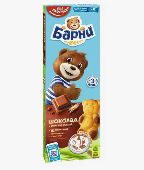 Барни Бисквит шоколад,150 г, 3 штуки интересное: