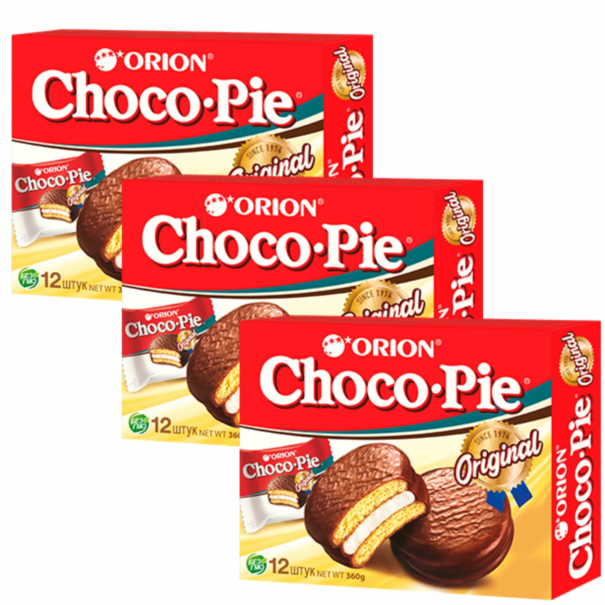 Печенье ORION Choco Pie, оригинальный, 3 шт. по 360 гр. интересное: