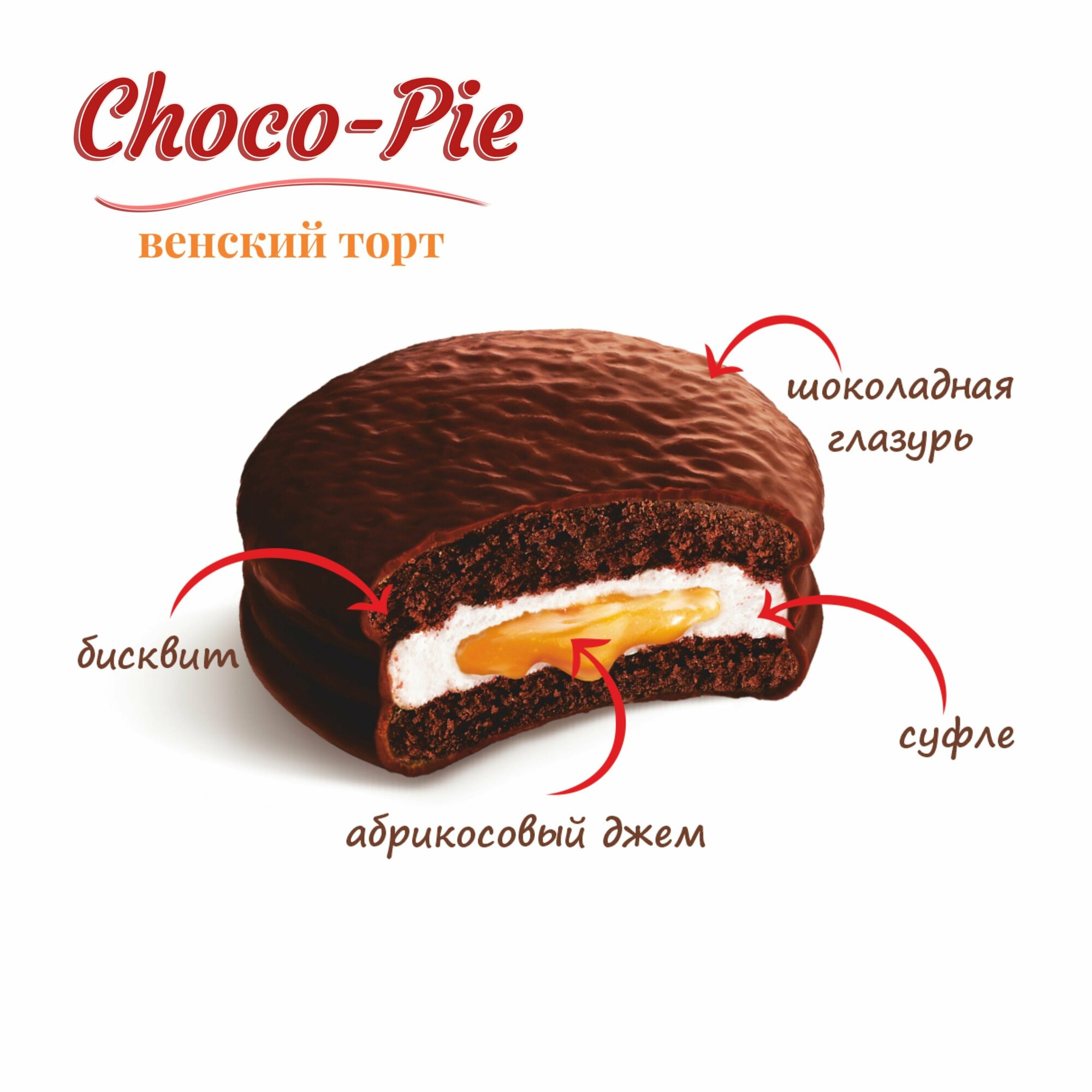 Купить Печенье ORION Choco Pie, Венский торт, абрикос, суфле 3 шт. по 360 гр.
