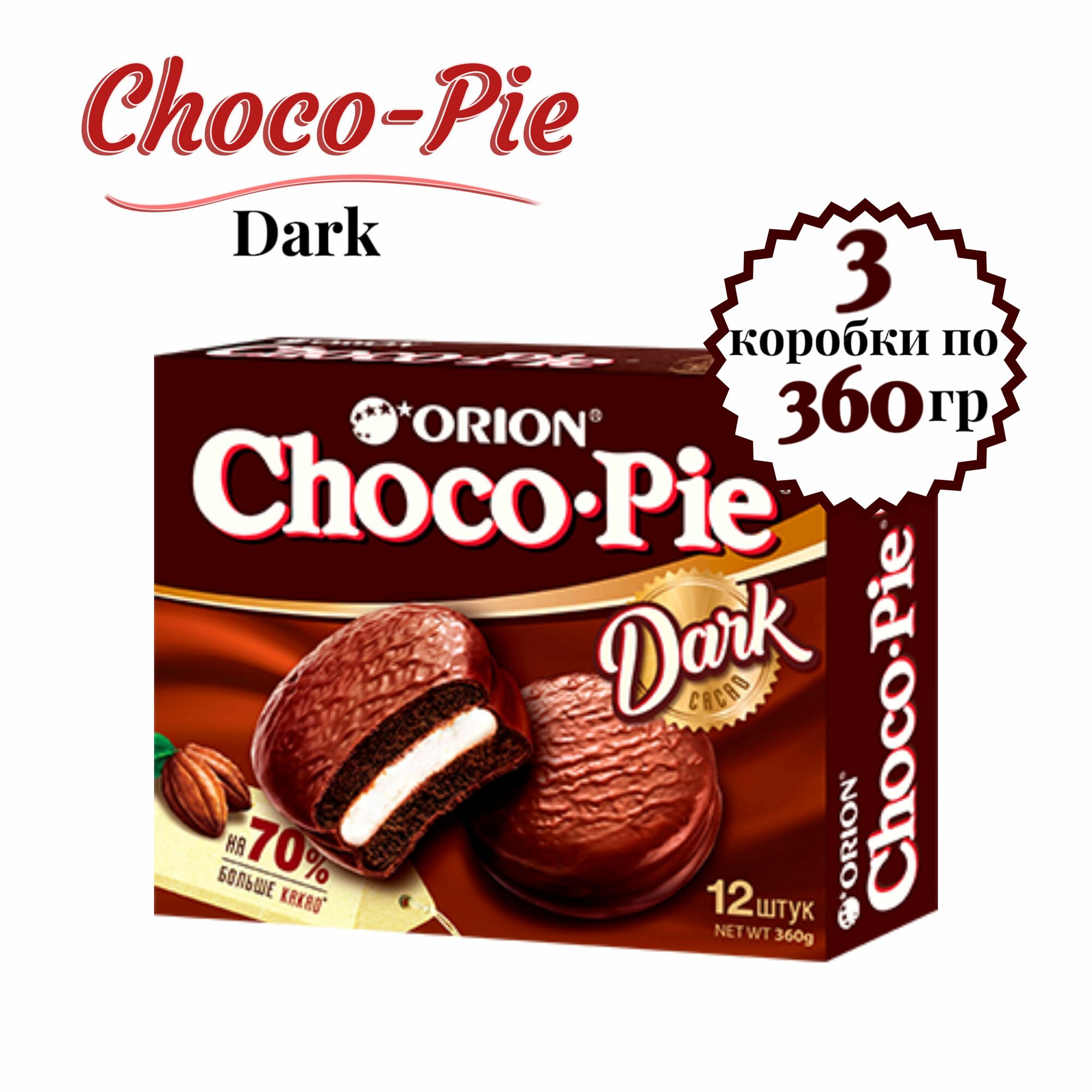 Купить Печенье ORION Choco Pie Dark, шоколад, суфле, 3 шт. по 360 гр.