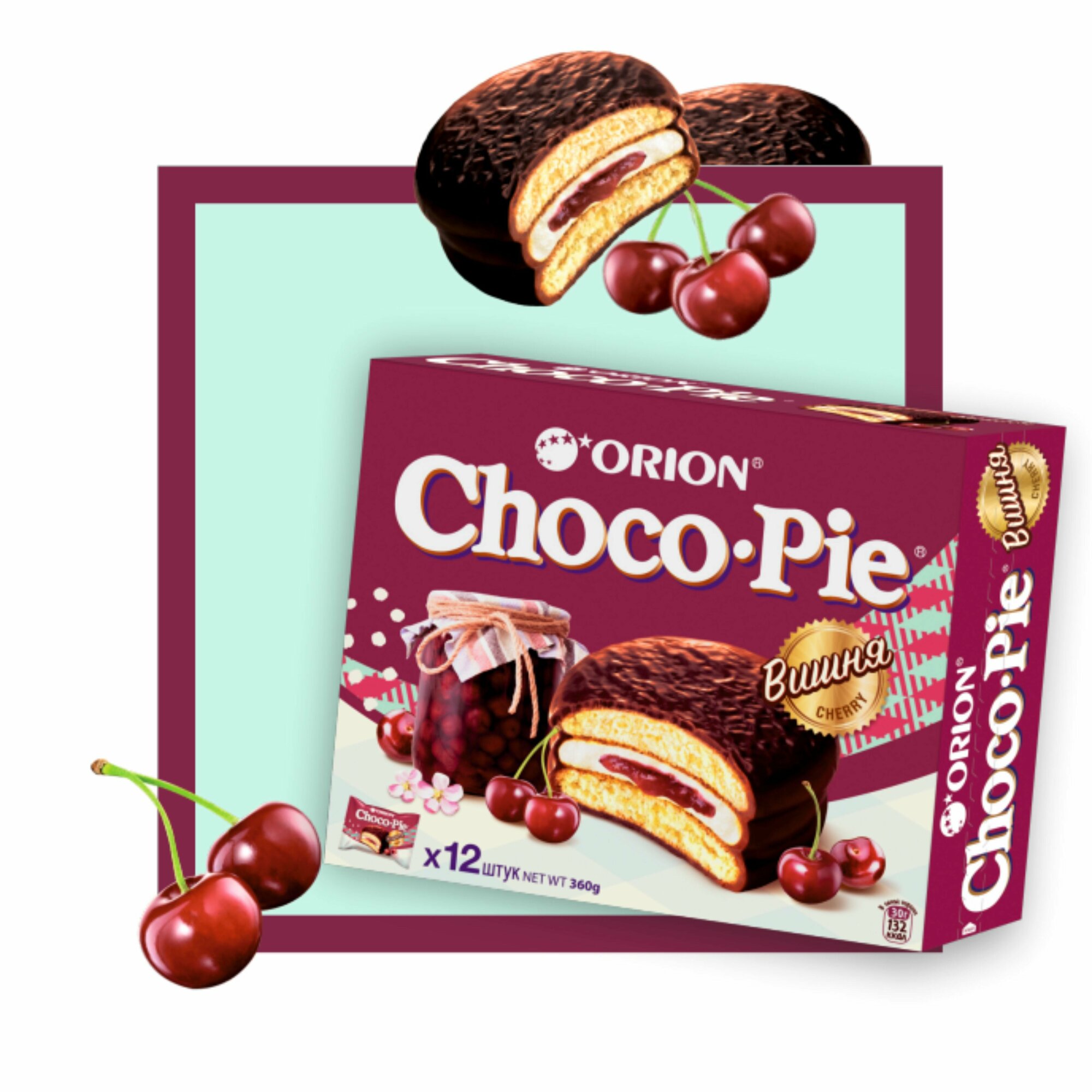 Купить Печенье ORION Choco Pie, вишня, суфле, в шоколадной глазури, 3 шт. по 360 гр.