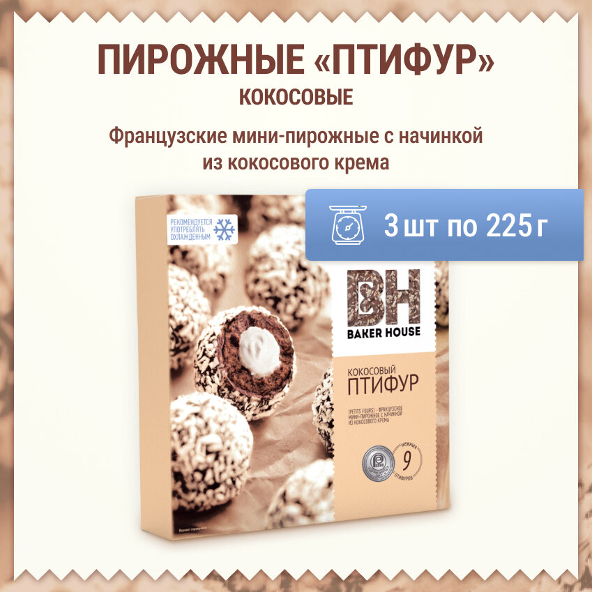 Купить Пирожные Baker House "Птифур Кокос", бисквит, кокос, без ГМО, 225г, 3шт