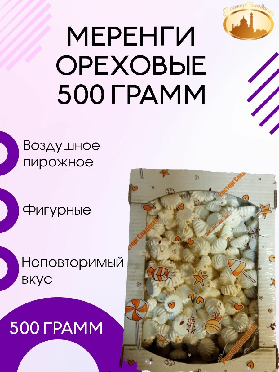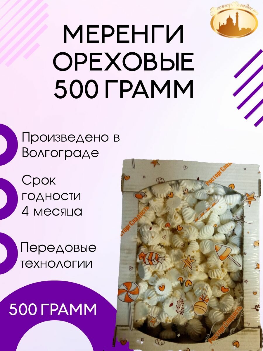 Ниже Вы можете прочитать отзывы на Меренги ореховые 500 грамм, ознакомится с подробными характеристиками, посмотреть интересные обзоры и фотографии на Меренги ореховые 500 грамм.