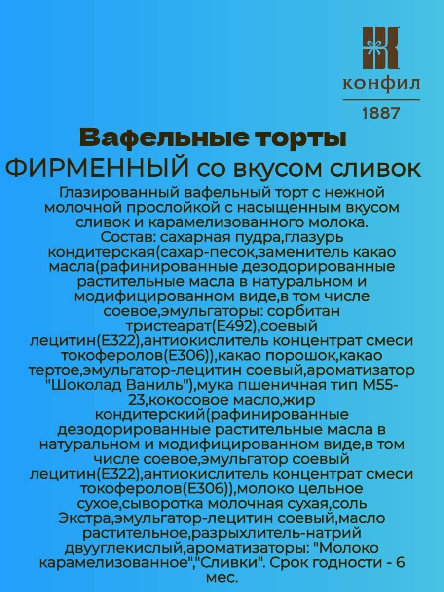 Вафельный торт Фирменный со вкусом сливок (240 грамм) интересное: