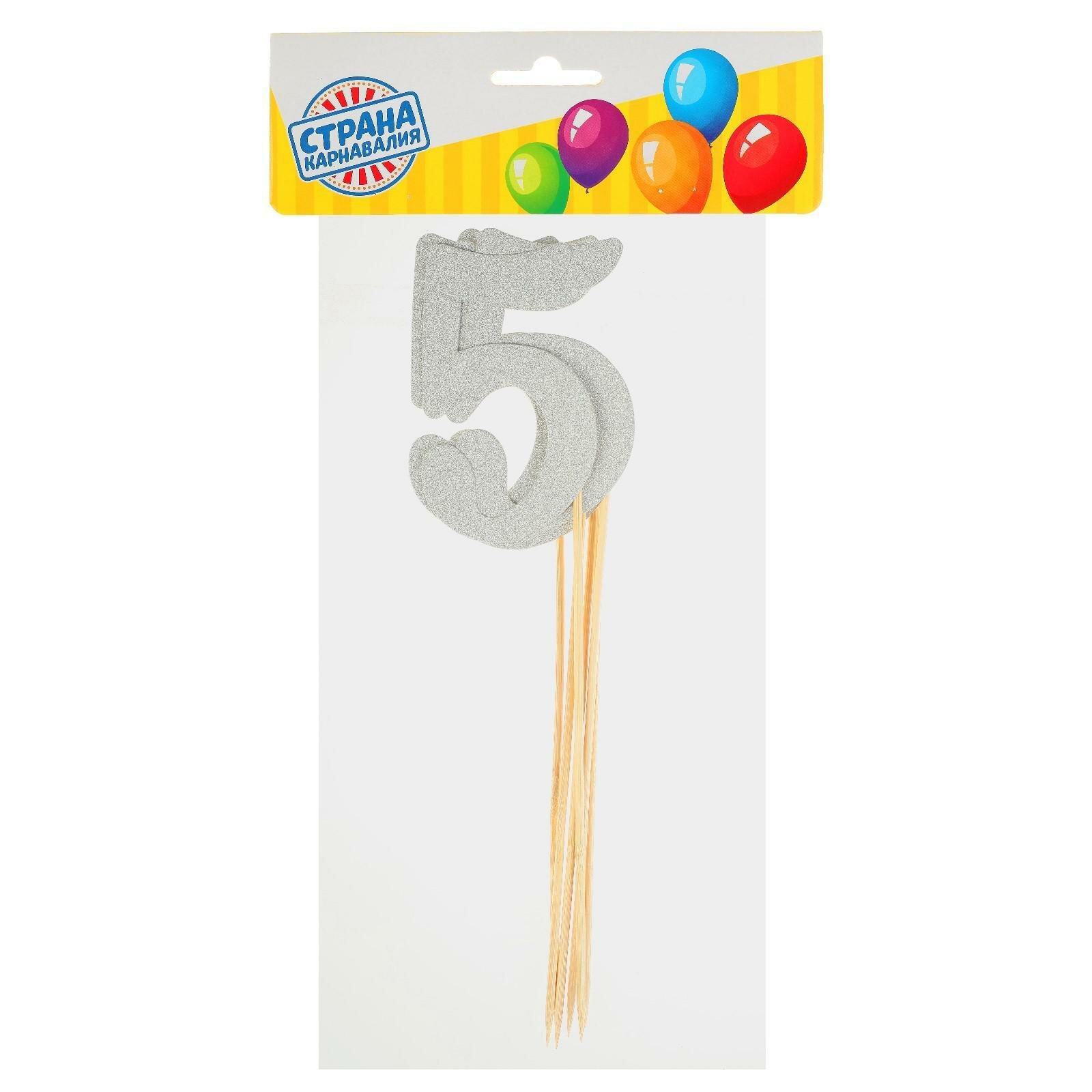 Топпер в торт «5», набор 6 шт, цвета микс интересное: