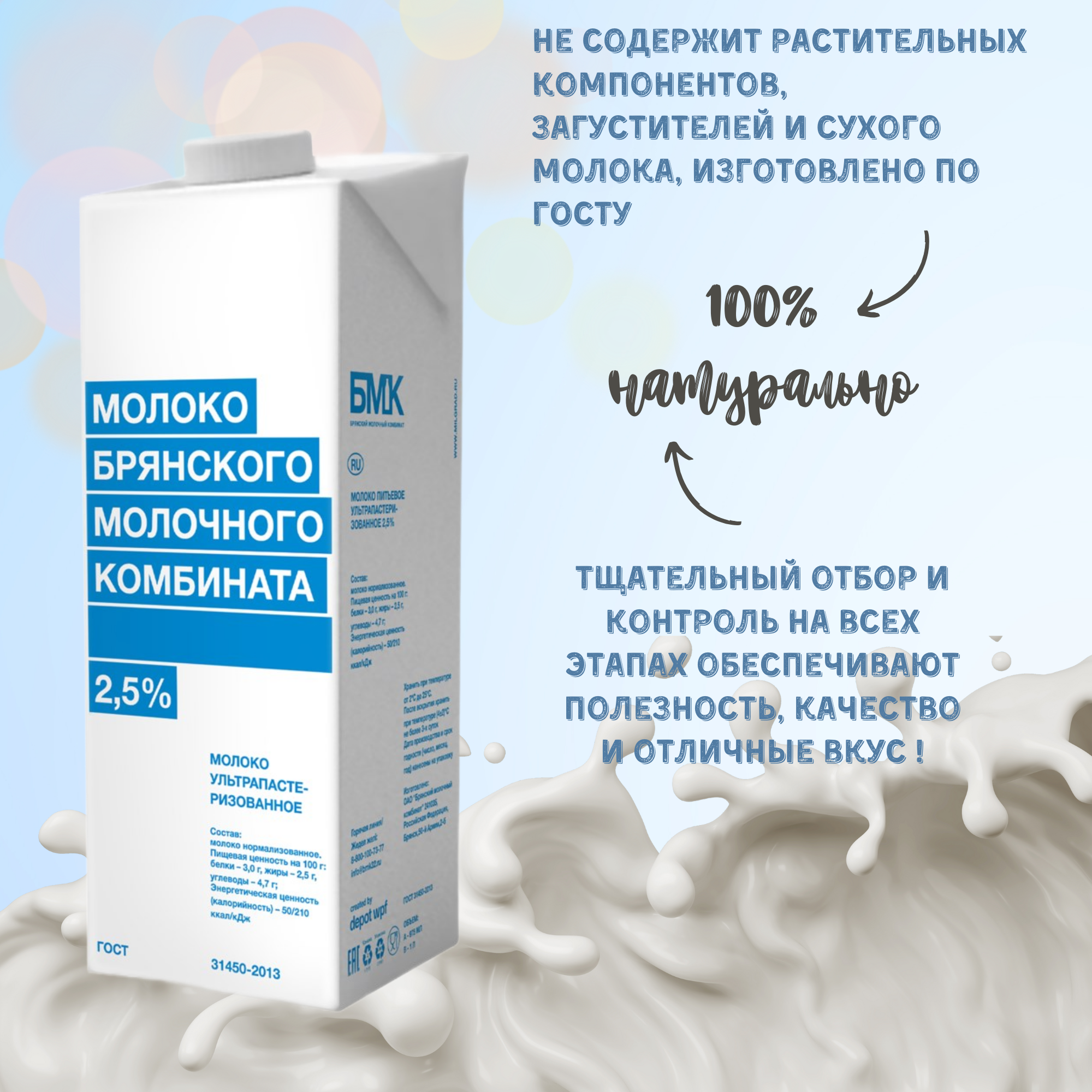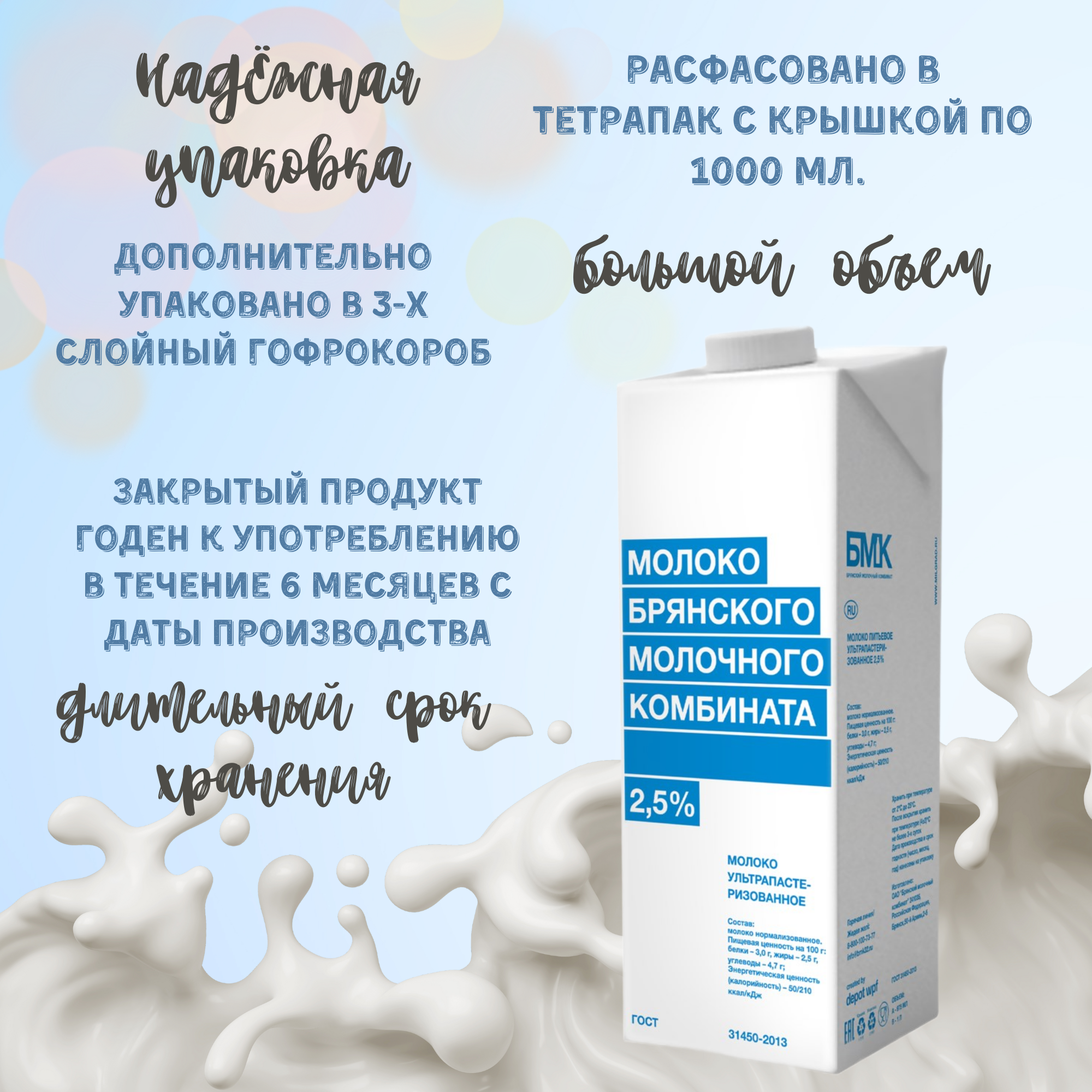 Молоко 2,5% ультрапастеризованное "Брянский молочный комбинат", 975 мл, 12 шт. интересное: