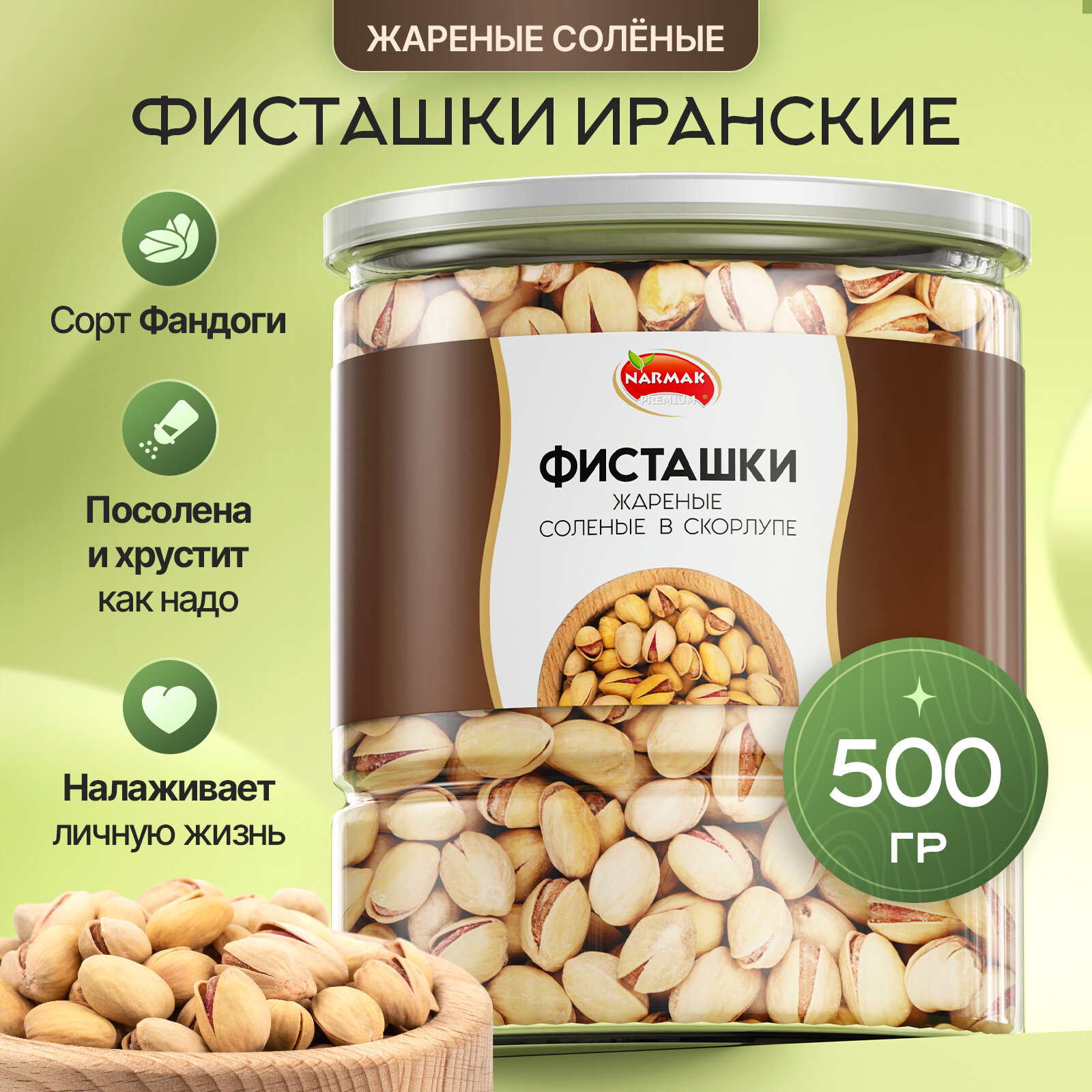 Фисташки жареные Narmak солёные орехи из Ирана в скорлупе, 500 г интересное: