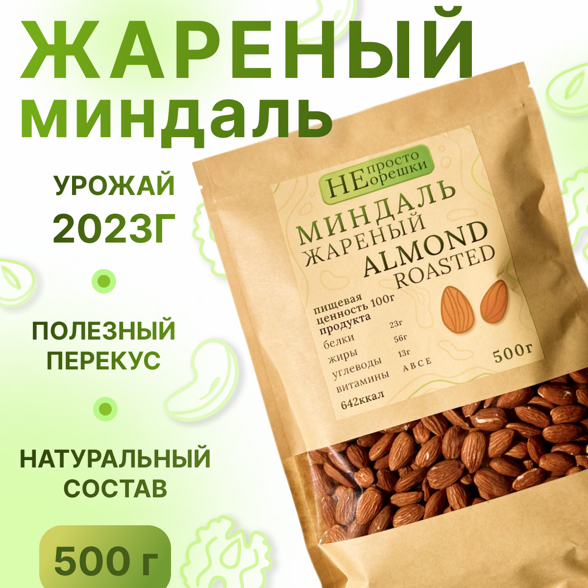 Миндаль отборный, жареный, НЕ просто орешки, 1000гр