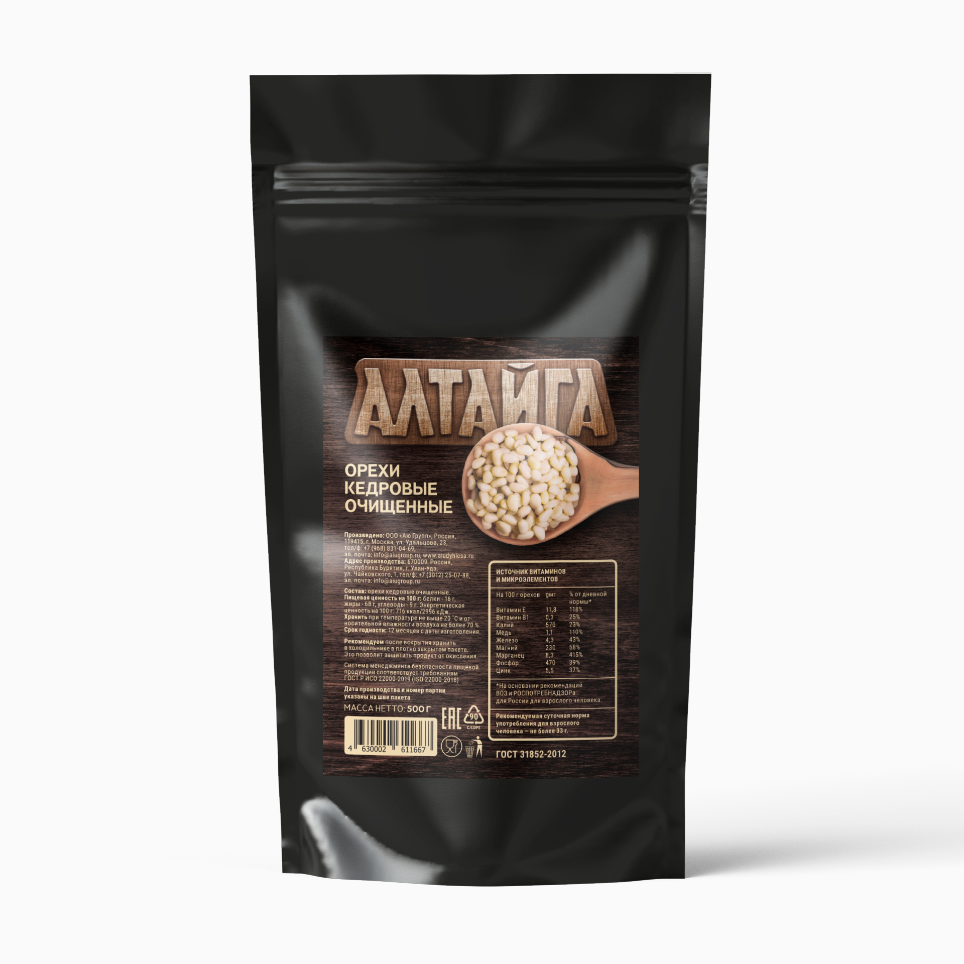 Кедровые орехи очищенные ТМ Алтайга, 500 грамм, новый урожай интересное: