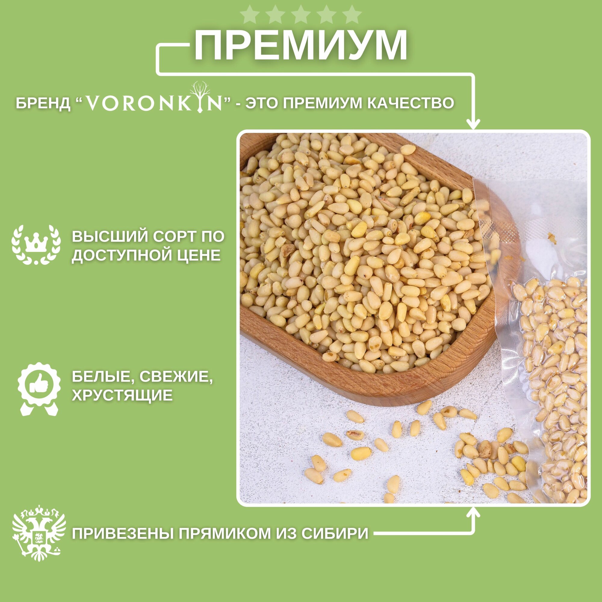 Кедр из Сибири, крупный, светлый, сырой орех в вакуумной упаковке, 200 грамм интересное:
